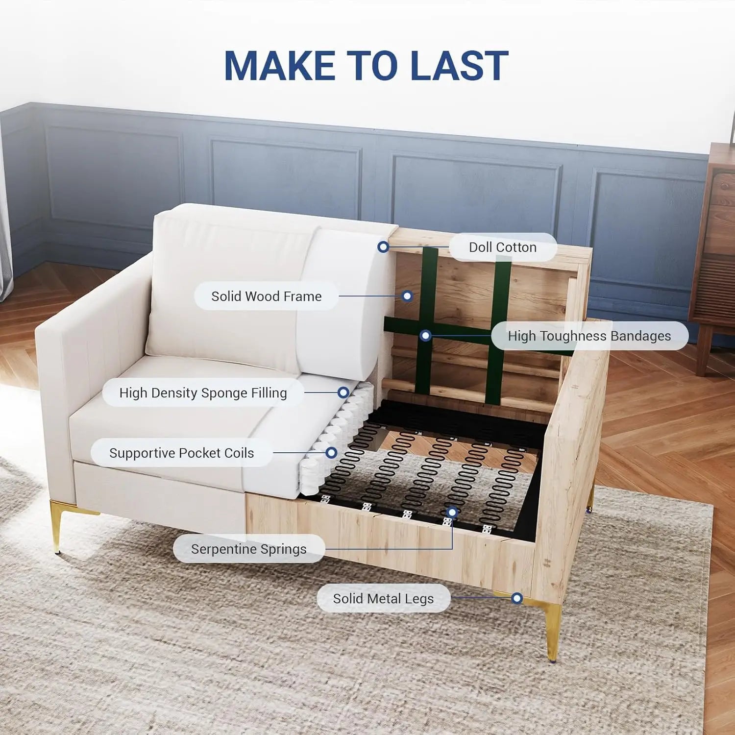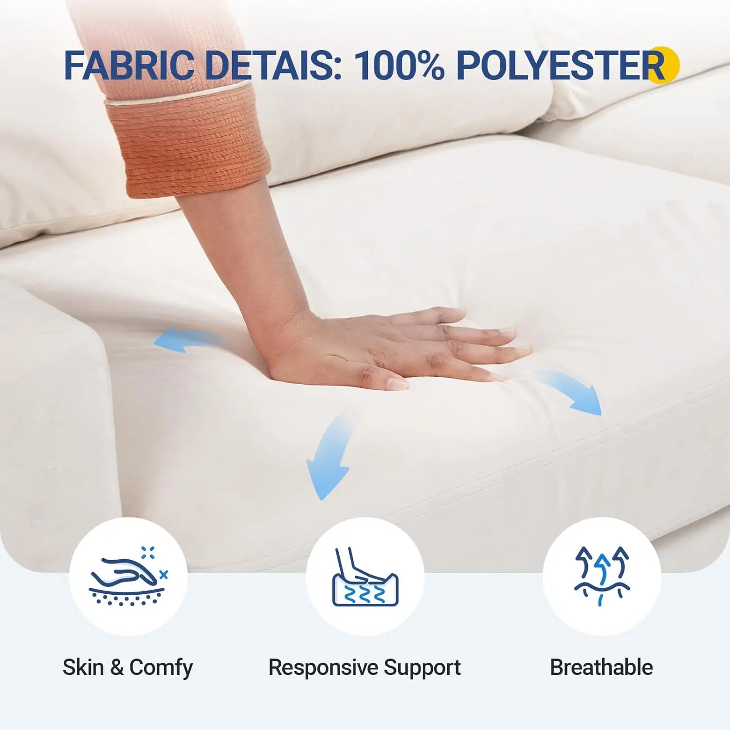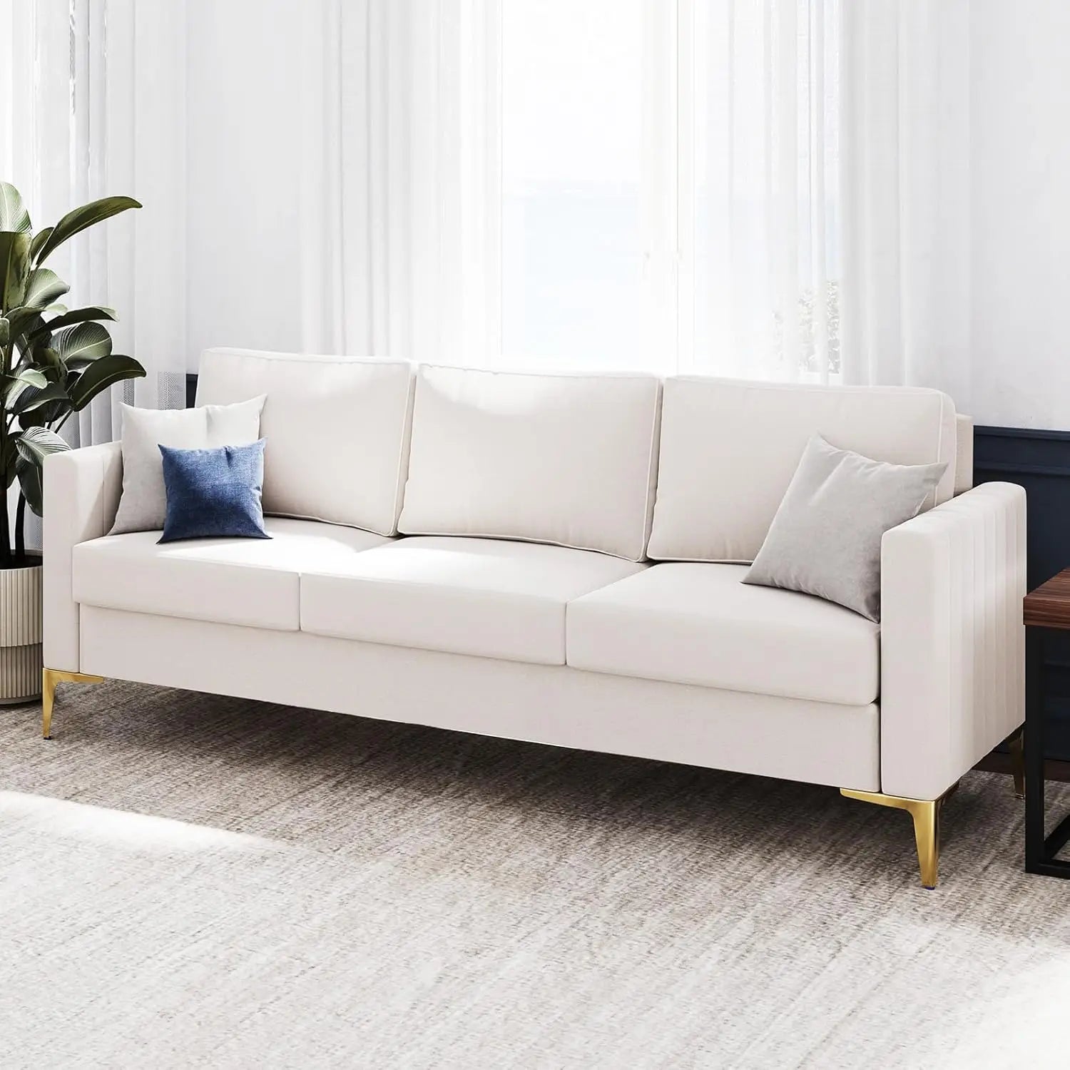 The 85", ivory design of this couches makes it a versatile addition to any room.