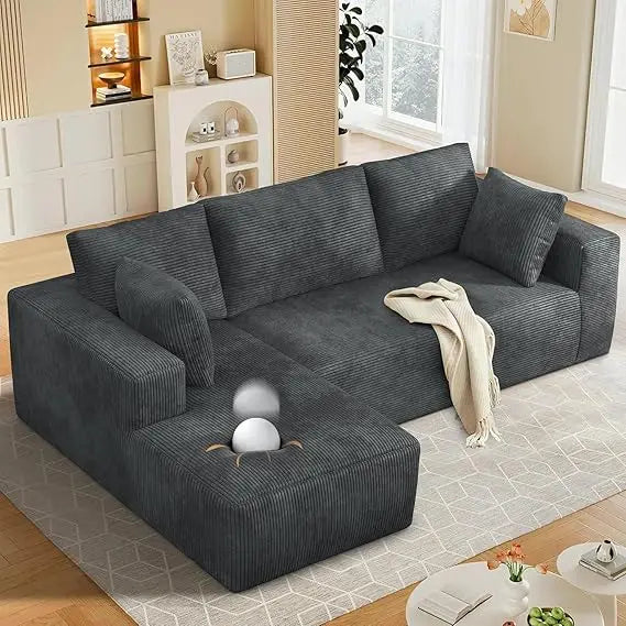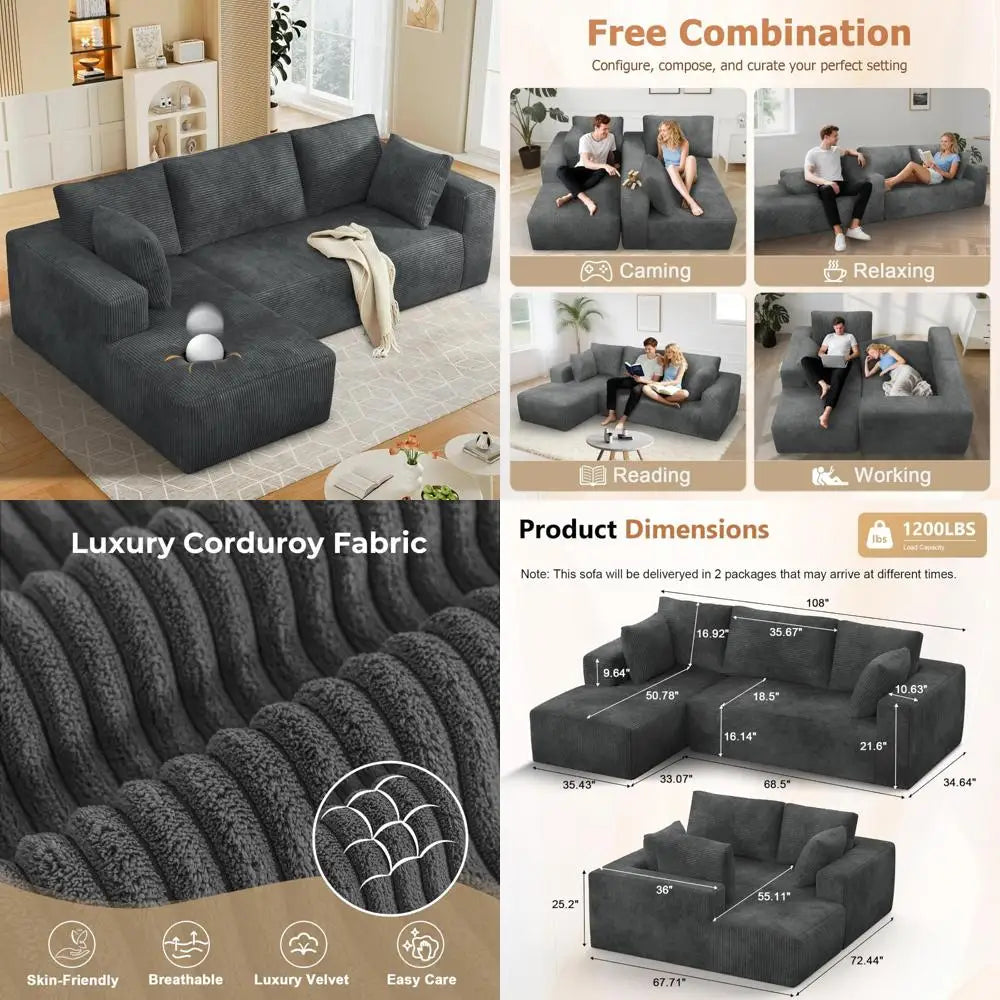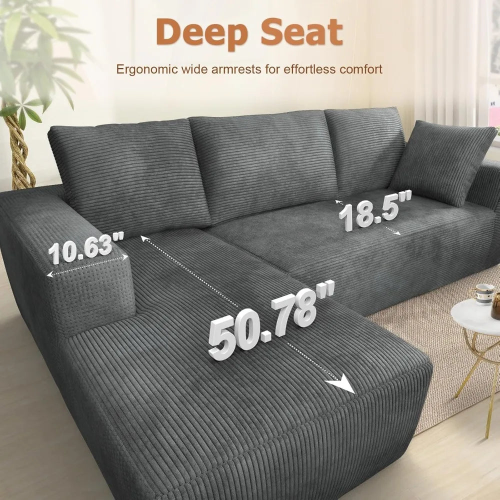 Modular Cloud Sectional Sofa with Deep Seating Corduroy Upholstered Couch for Living