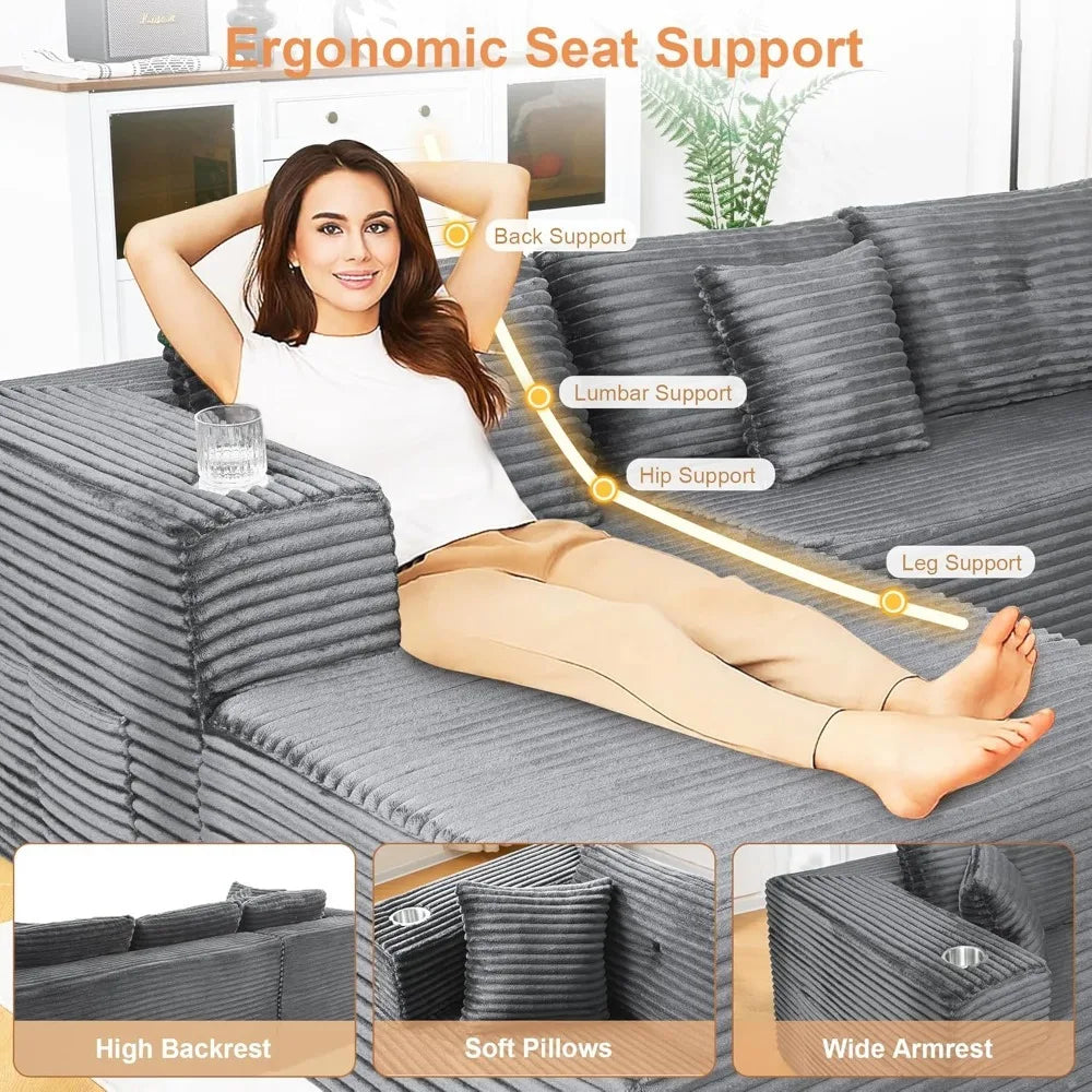 The 105", modern design of this couches makes it a versatile addition to any room.