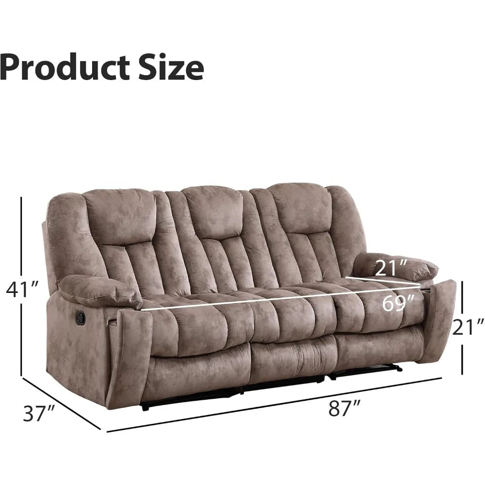 Reclining Sofa for Living Room Extra Wide Modern Overstuffed Seat Recliner Manual