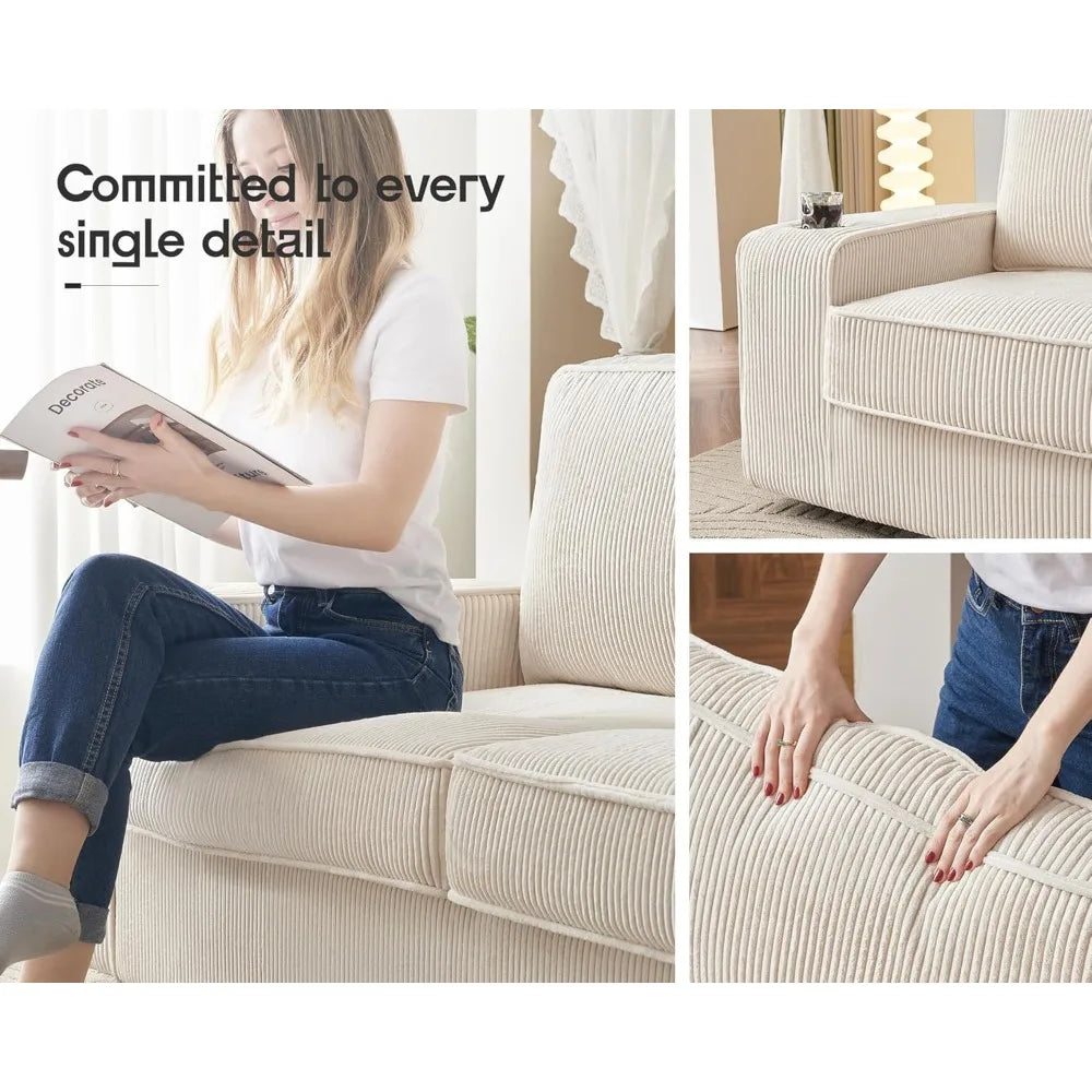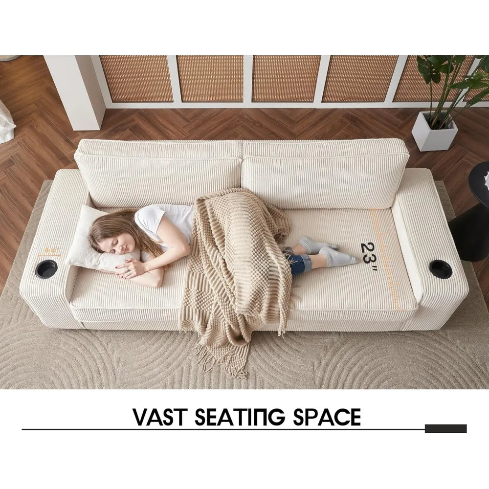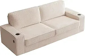This 89", beige couches brings both functionality and style to your space. The USB port lets you charge your devices conveniently.