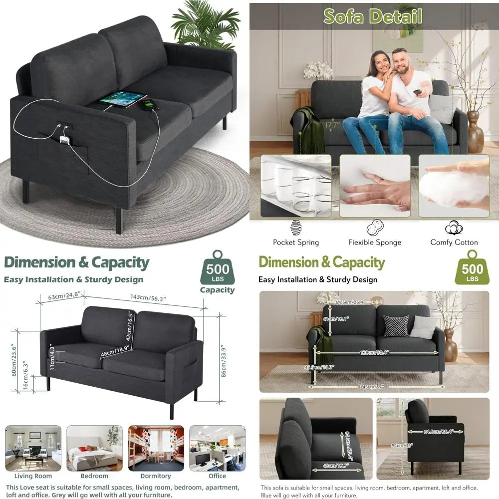 This modern, fabric couches brings both functionality and style to your space. The USB port lets you charge your devices conveniently.