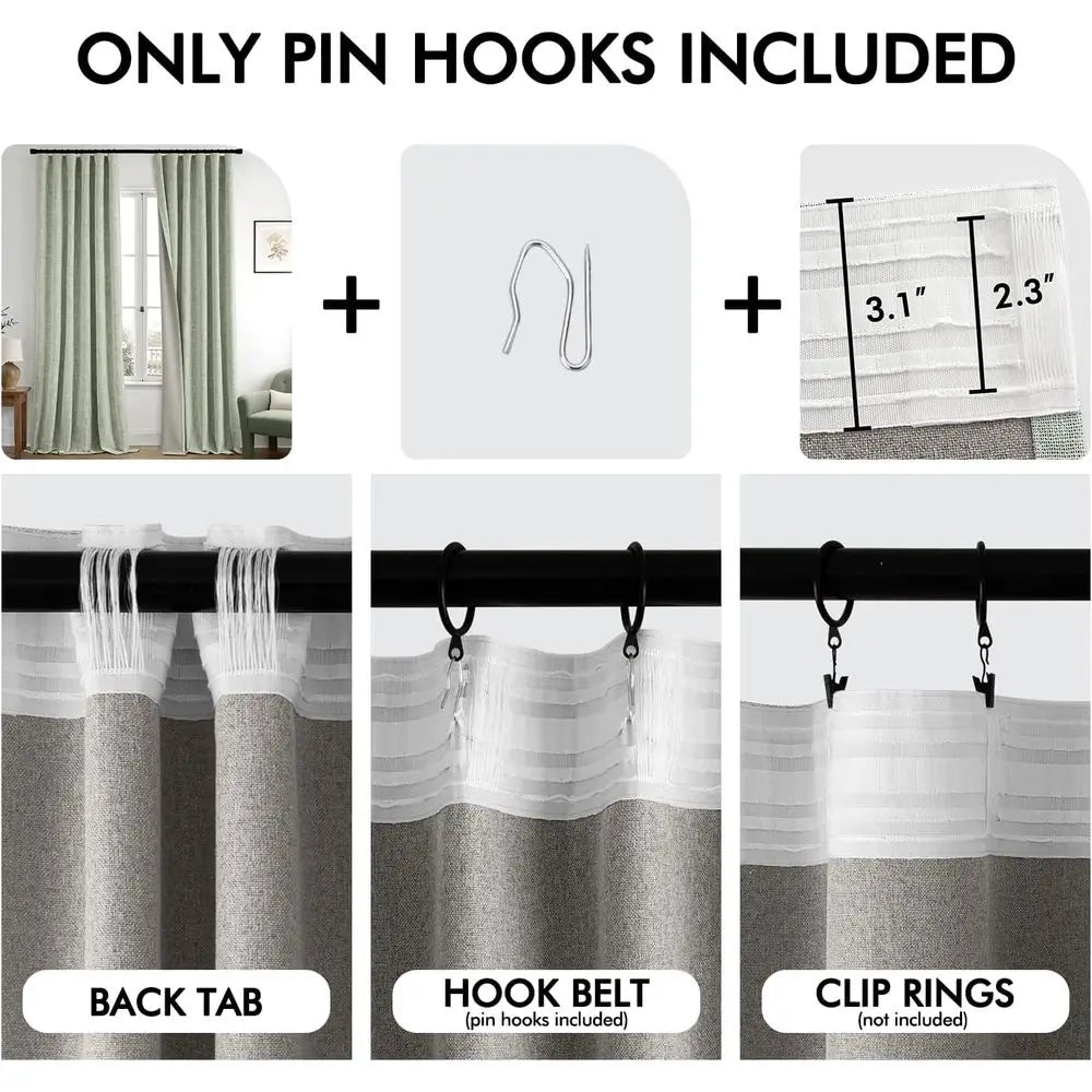 Sage Green Linen Blackout Curtains Panel Set Double Sided