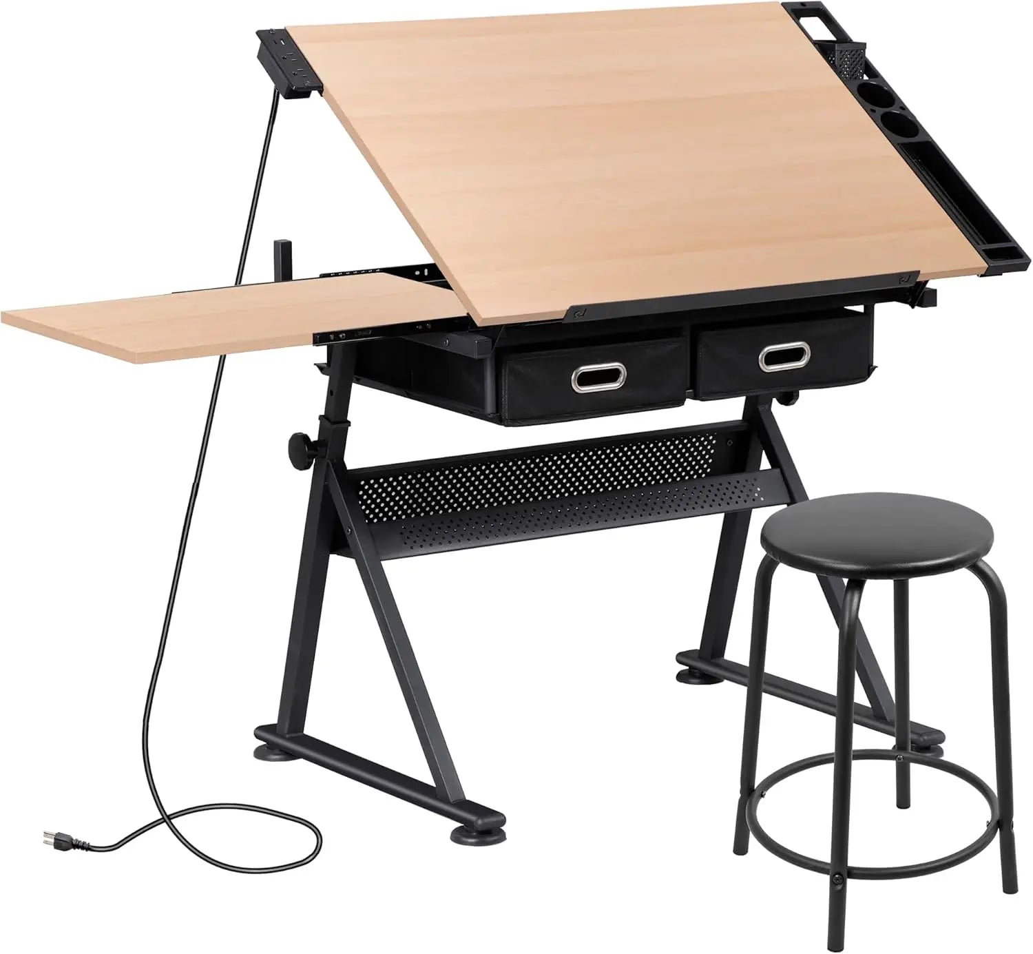 Adjustable Drafting Table with Stool Tilting Drawing Desk Artist - Adjustable Height