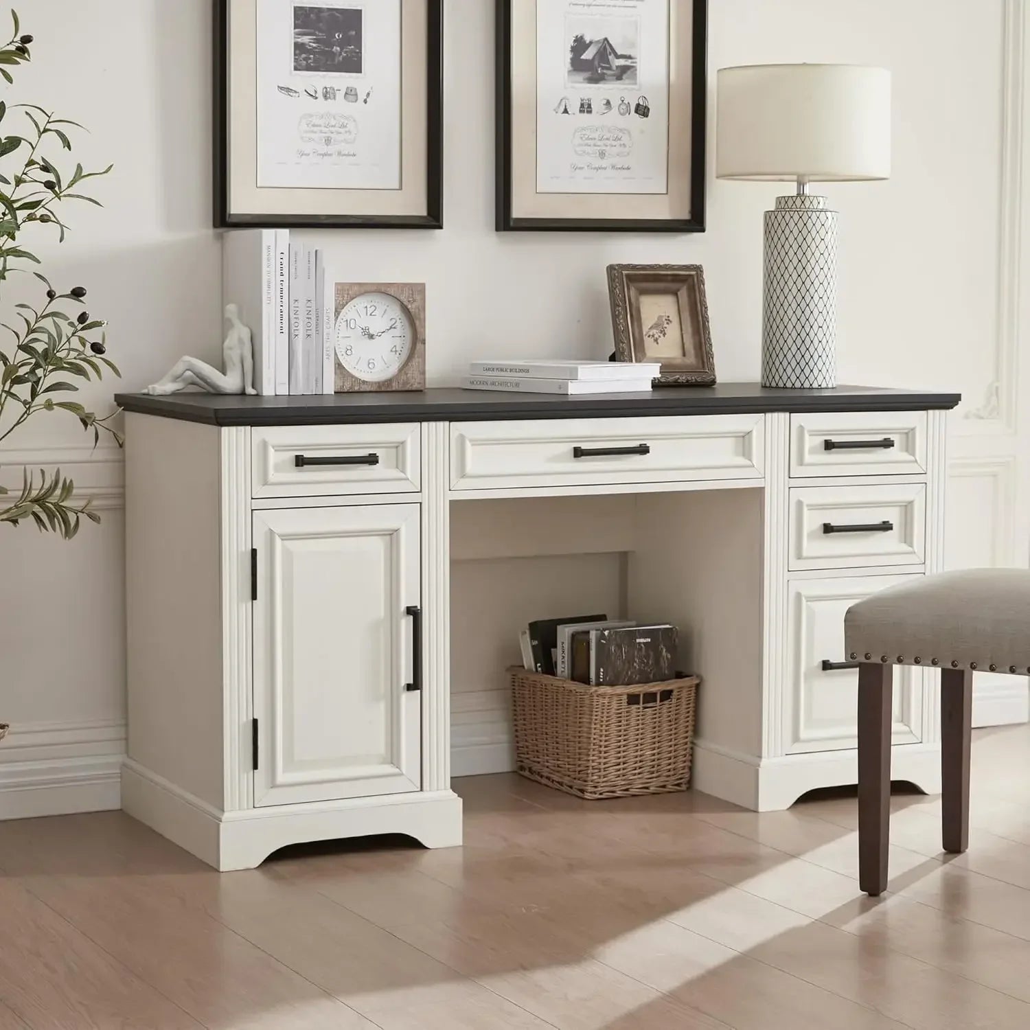 Customizable Executive Desk Farmhouse Computer with Drawers and Cabinet