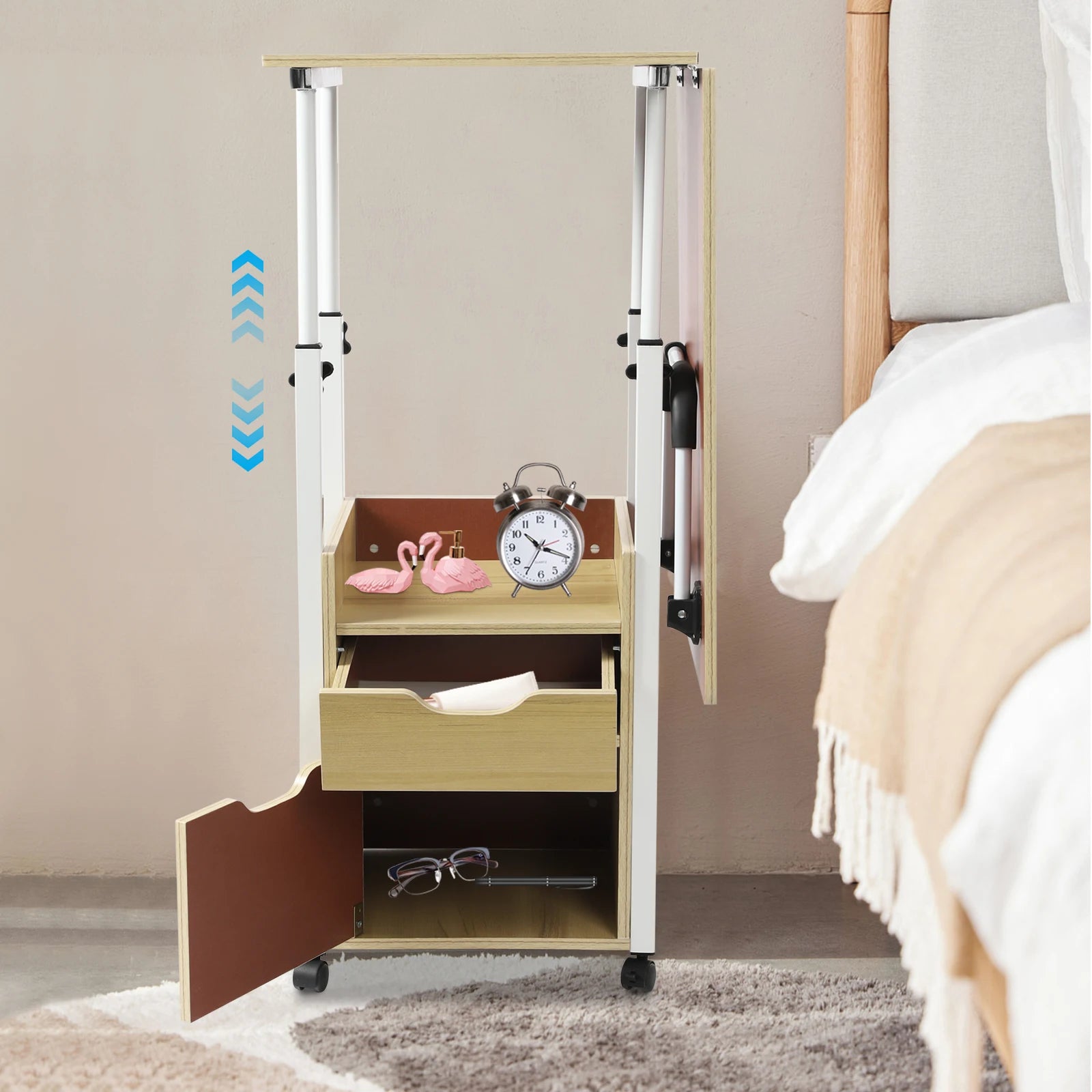 Foldable Laptop Desk with Wheels Height Adjustable Bedside Computer - Adjustable Height