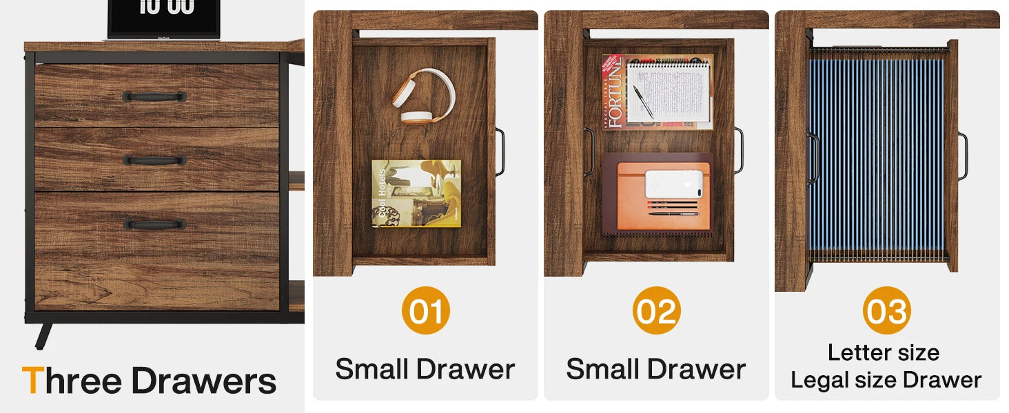 53-Inch Shaped Computer Desk with Drawers Home Office Shelves