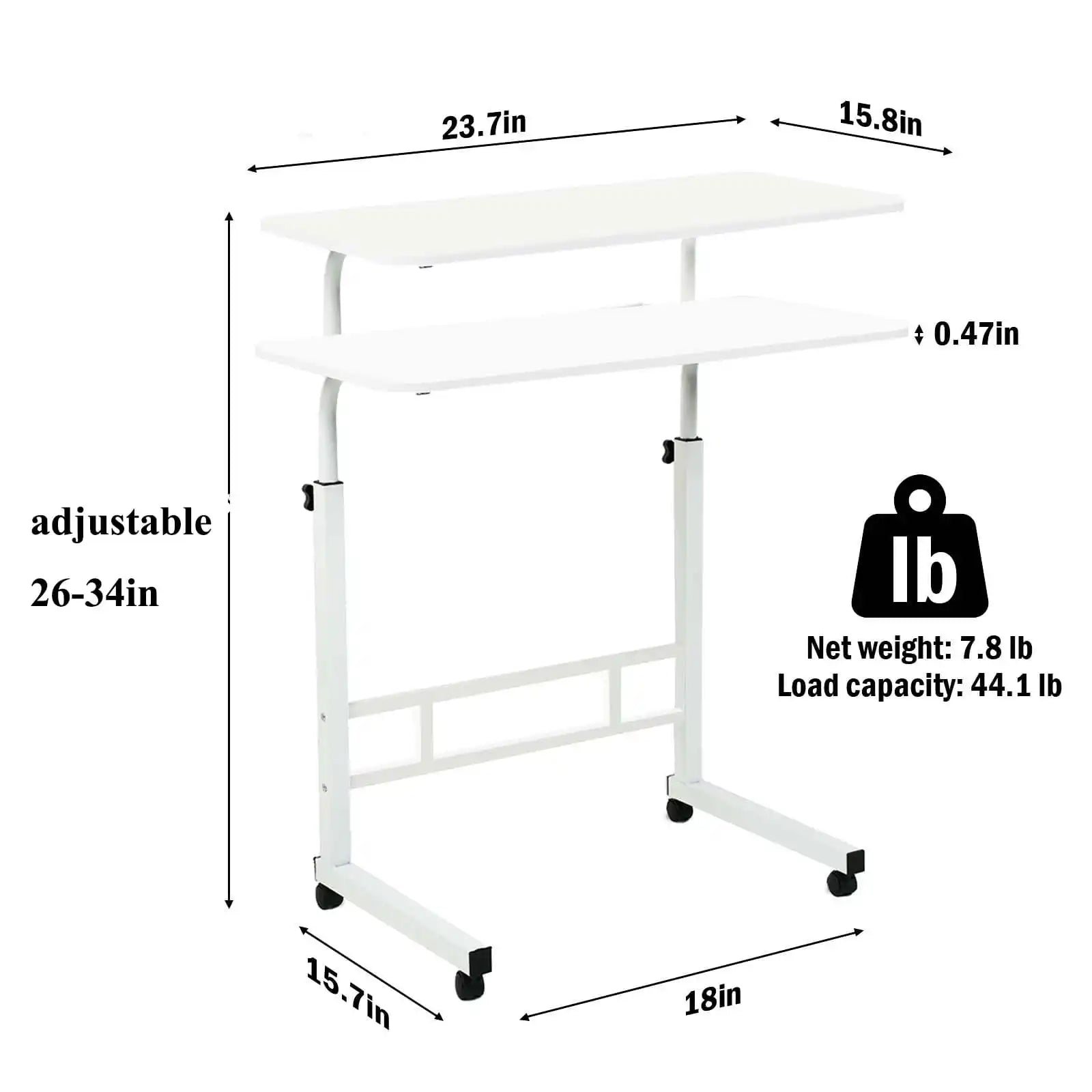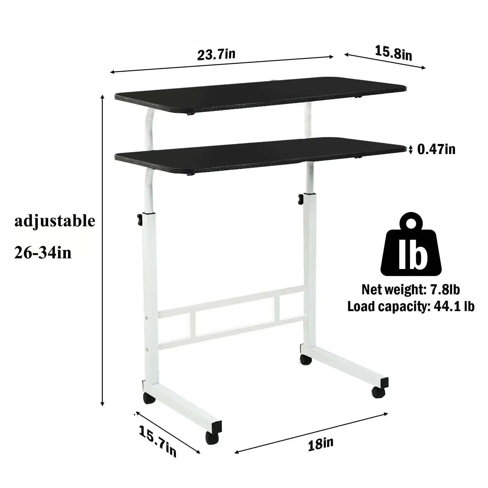 Rolling Laptop Desk with Adjustable Height Mobile Side Table