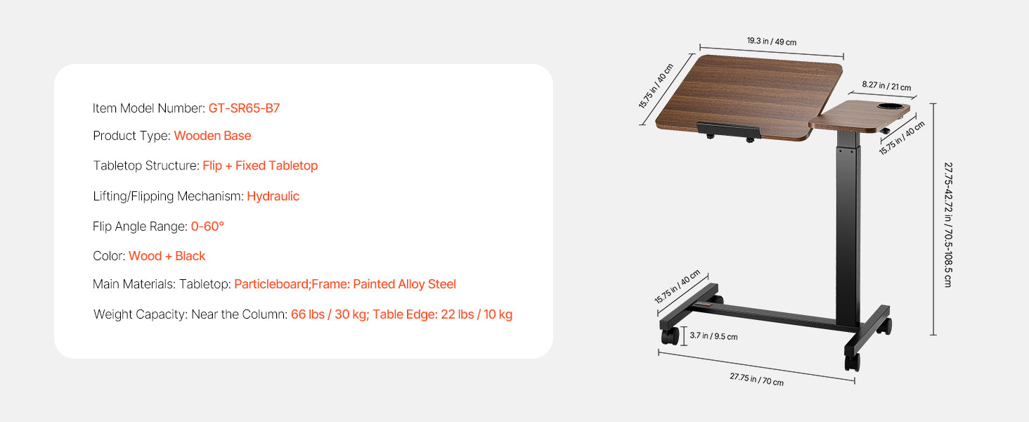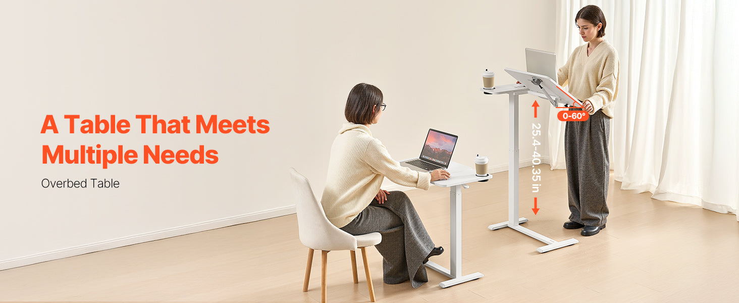 SucceBuy Overbed Table Mobile Bed Side with Swivel Casters - Adjustable Height