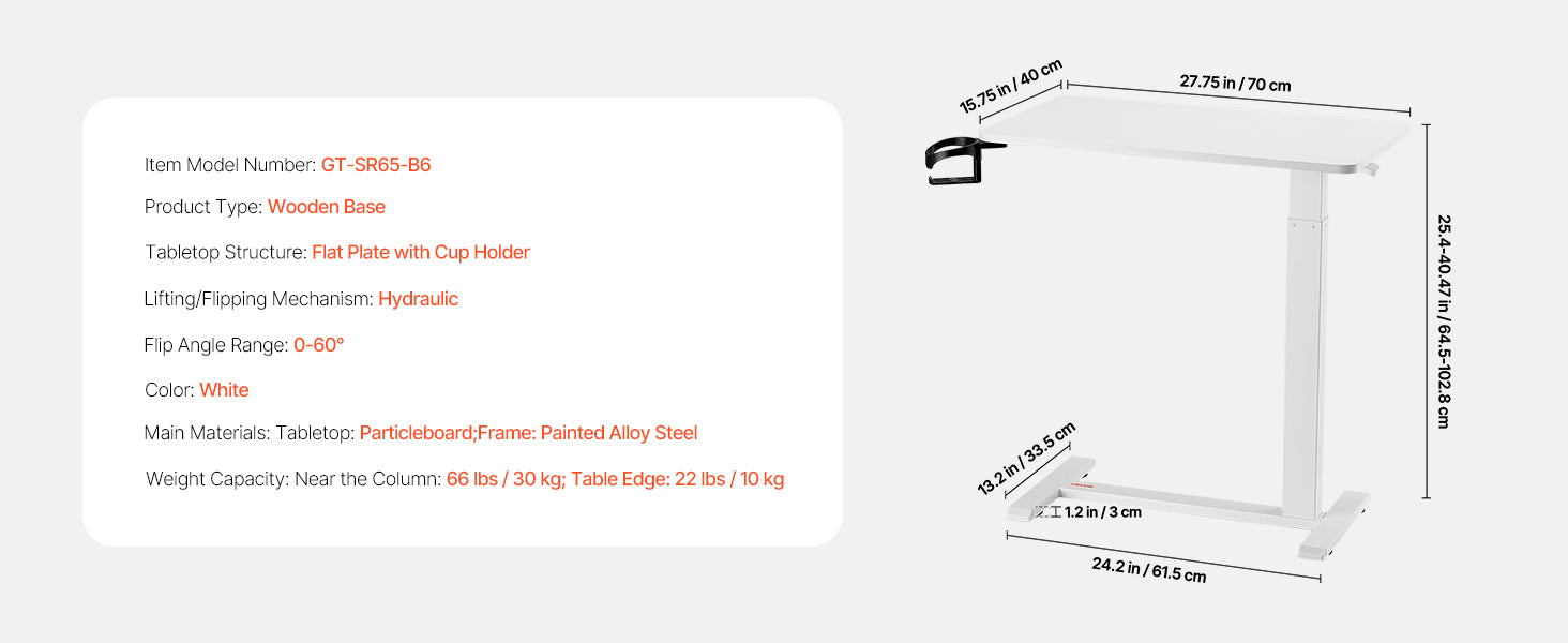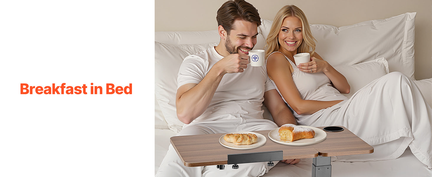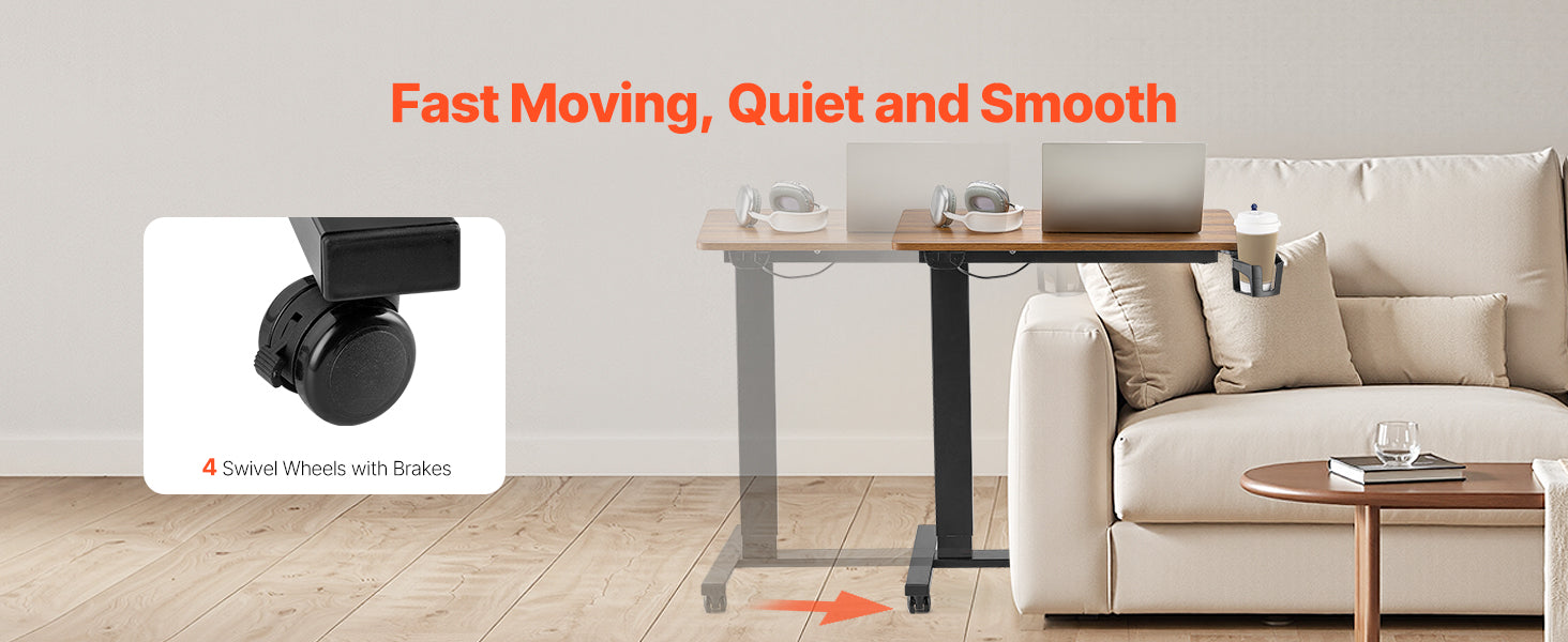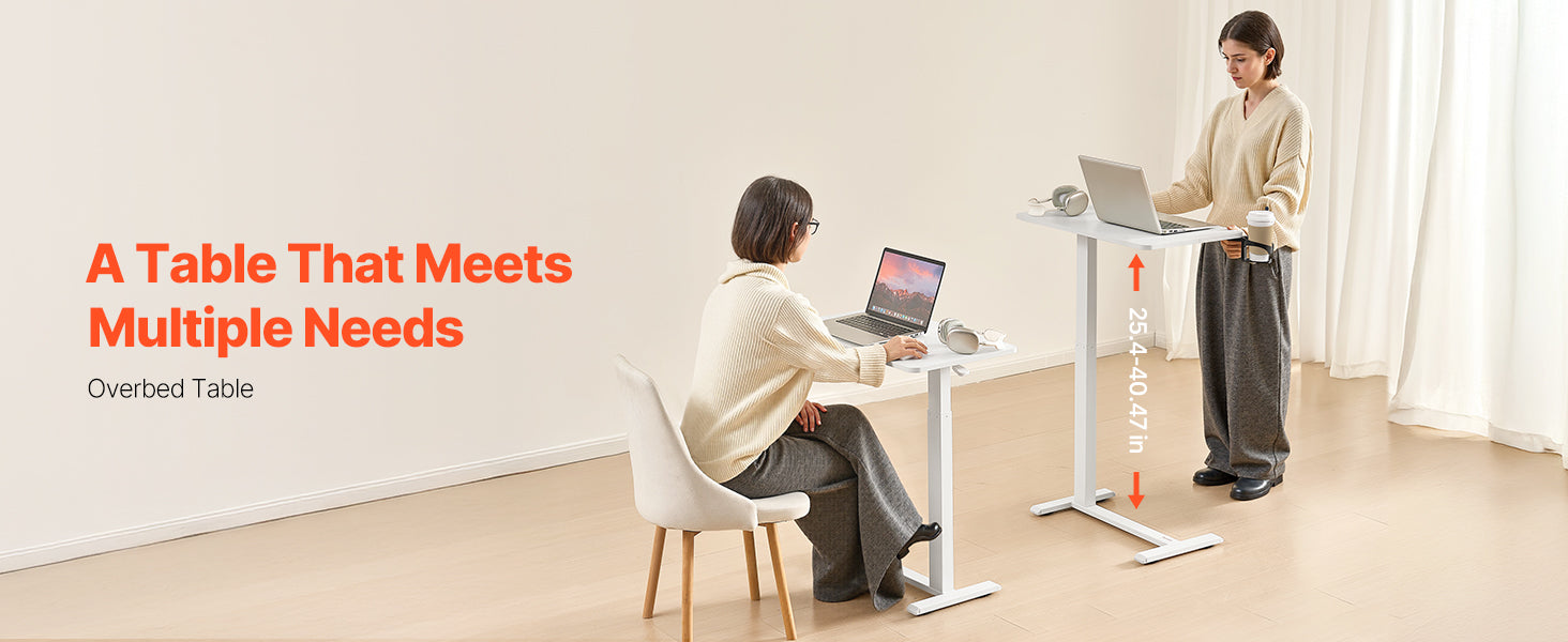 SucceBuy Overbed Table Mobile Bed Side with Swivel Casters - Adjustable Height