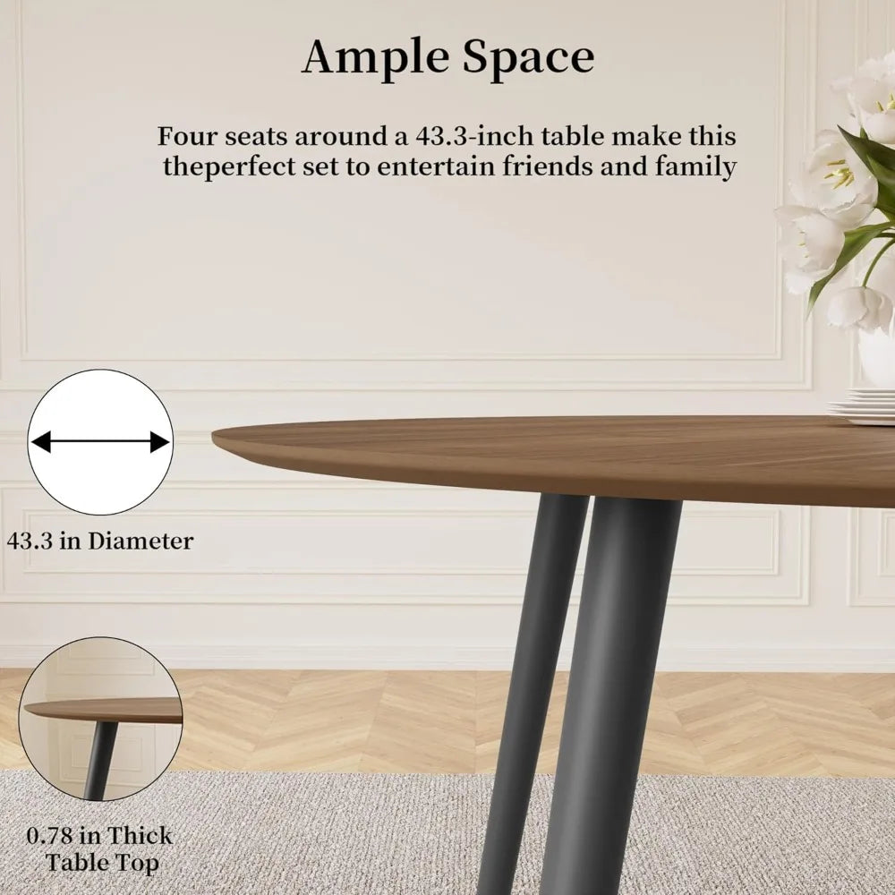 Walnut Round Dining Table for Space Saving Option Kitchen