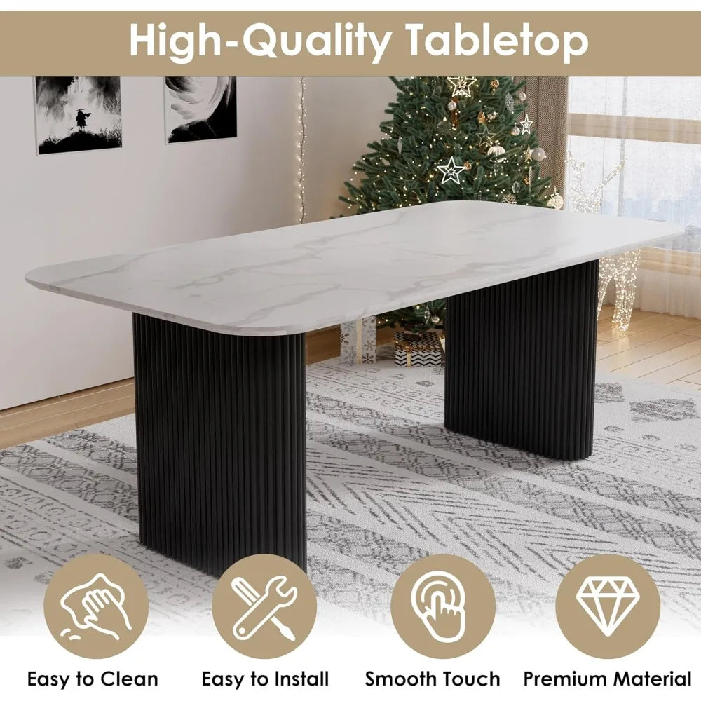 Faux Marble Oval Dining Table for Modern Kitchen Seats