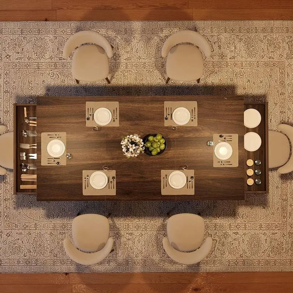 Rectangular 71-Inch Wooden Dining Table for Large Kitchen with Double