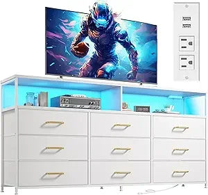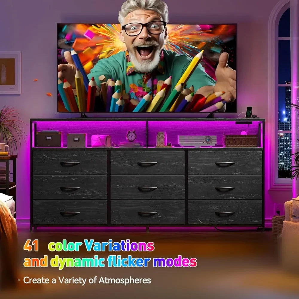 Black Dresser for Bedroom with Charging Station Led