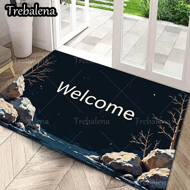 1pc Welcome Door Mat Snowy Night Landscape Doormat (40x60CM)