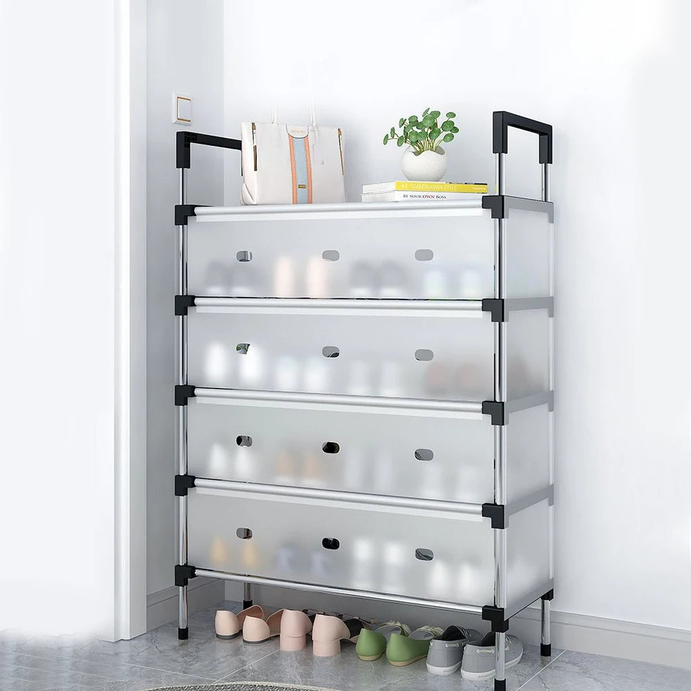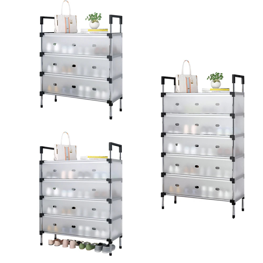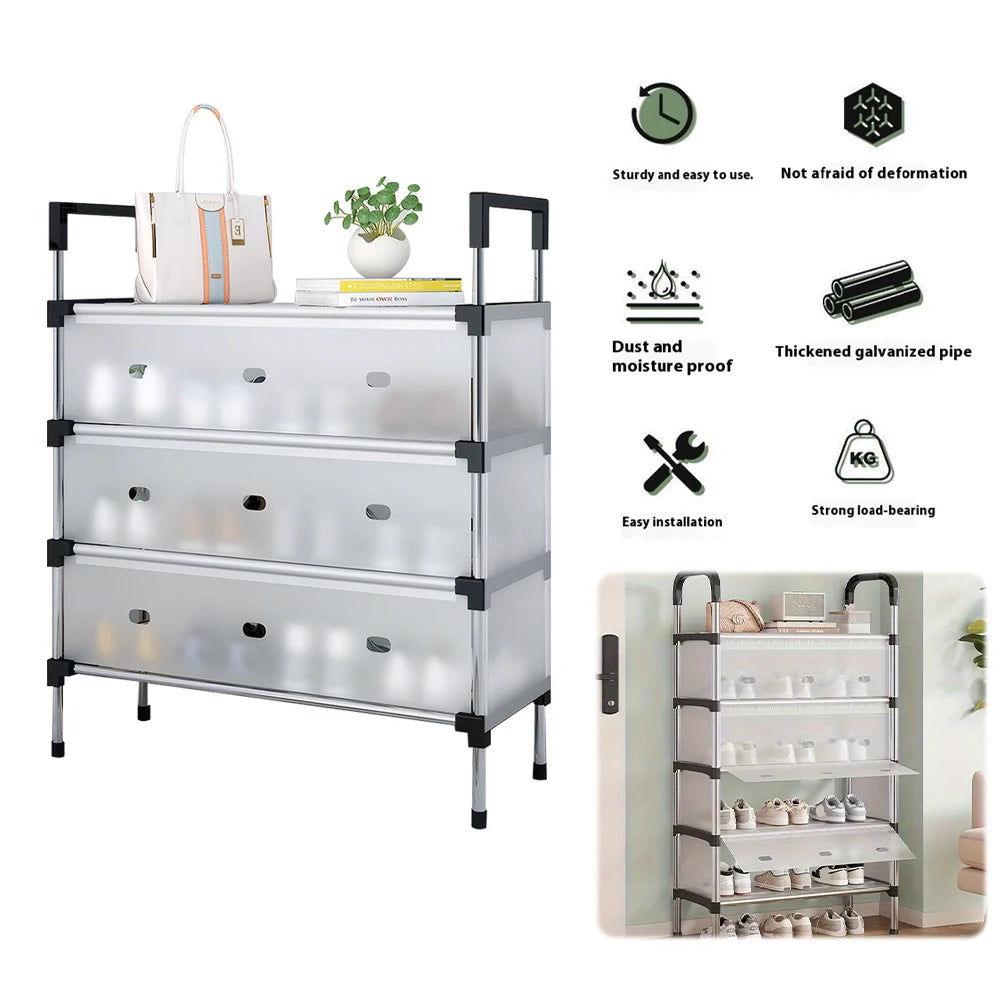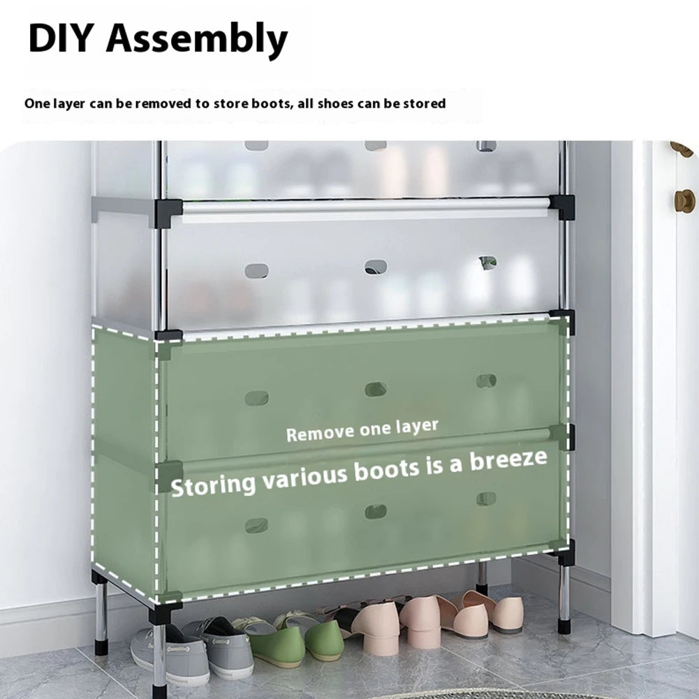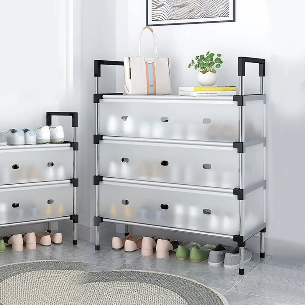 The 77" × 63" × 28", black design of this shoestorage makes it a versatile addition to any room. The built-in storage lets you store items inside to reduce clutter.