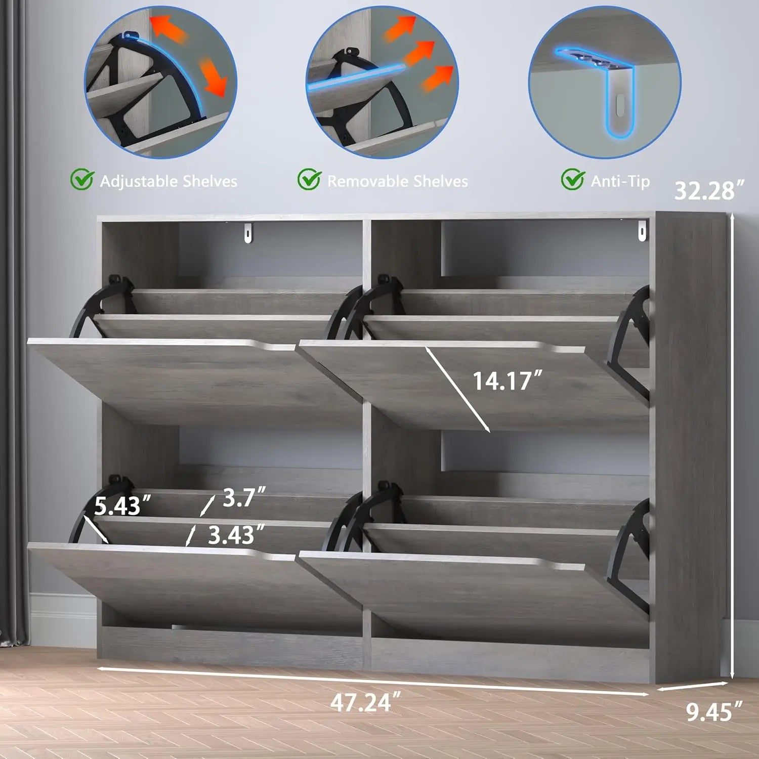 The 333", white design of this shoestorage makes it a versatile addition to any room. The adjustable height lets you adjust it to your preferred height.