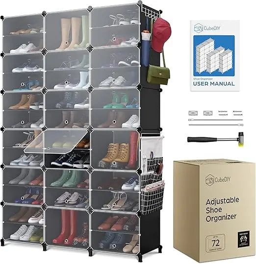 The 333", black design of this shoestorage makes it a versatile addition to any room. The stackable lets you stack multiple units to save space.