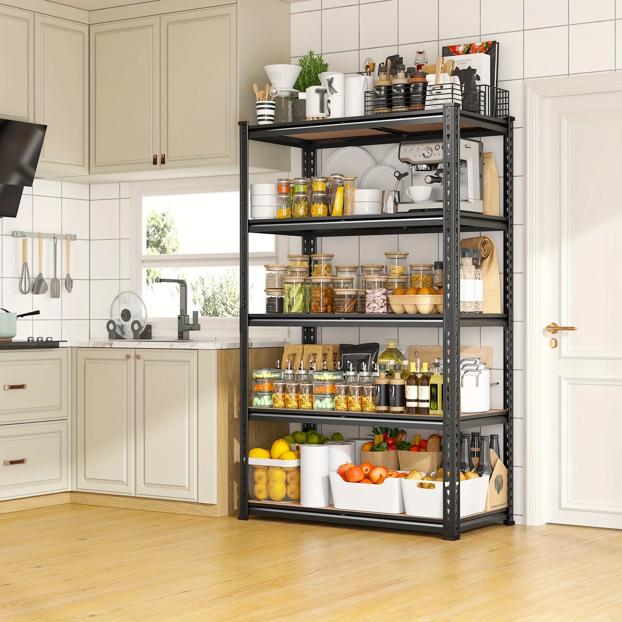 This 333", wood and metal shelving brings both functionality and style to your space. The adjustable height lets you adjust it to your preferred height.