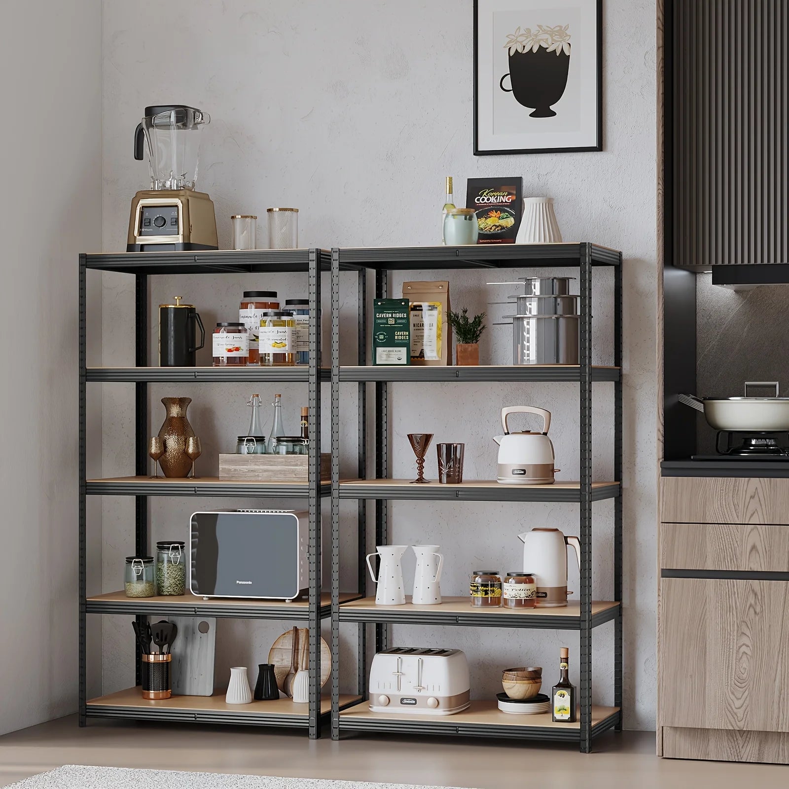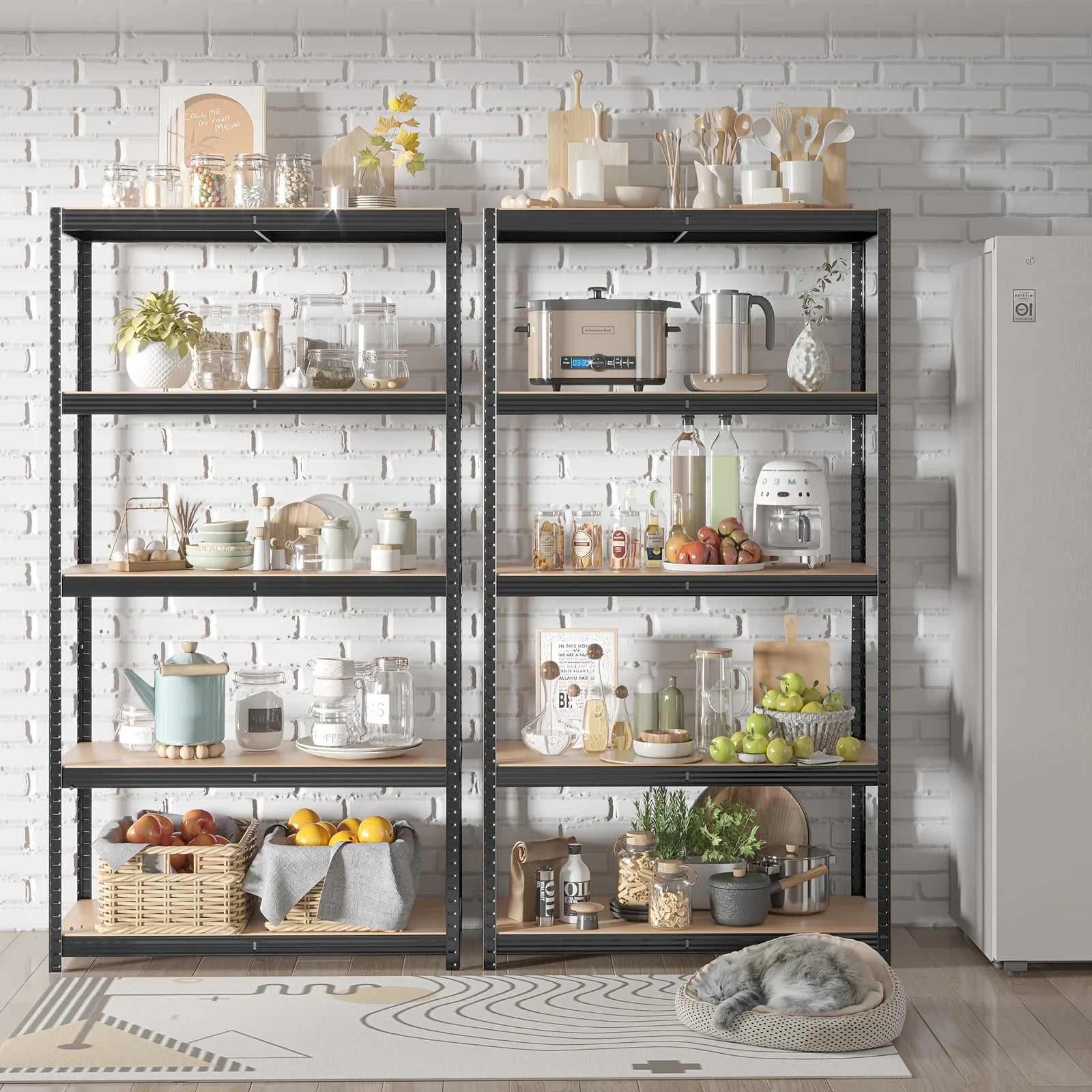 This 333", wood and metal shelving brings both functionality and style to your space. The adjustable height lets you adjust it to your preferred height.
