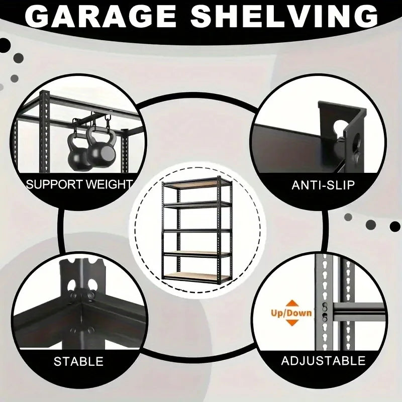 Featuring 333", black construction, this shelving combines durability with aesthetic appeal. The built-in storage lets you store items inside to reduce clutter.