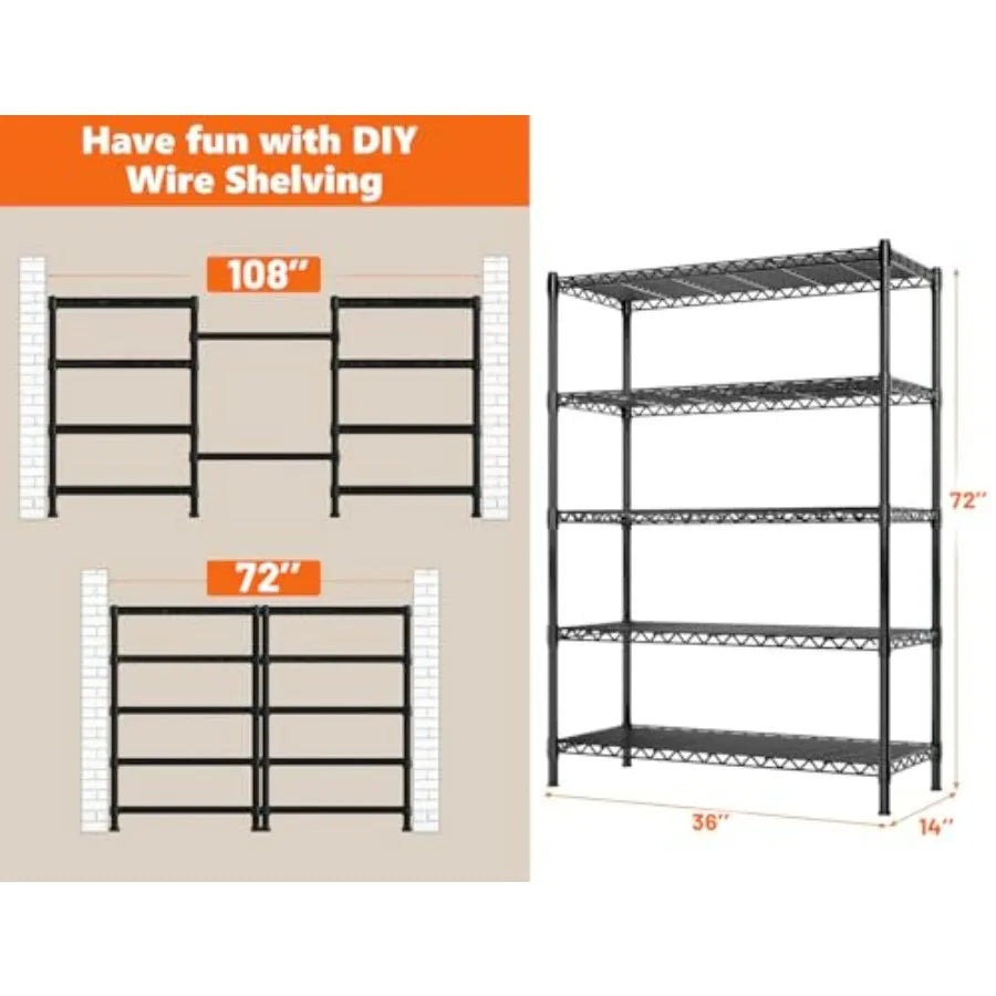 5shelf Wire Shelving Storage Shelves Metal for 72h Adjustable - Adjustable Height