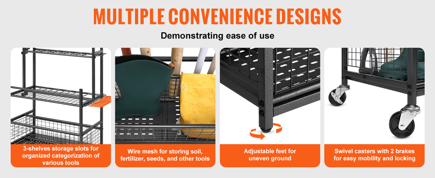 Succebuy 16 Slots Garden Tool Organizer Yard Tool Tower Rack with Hooks
