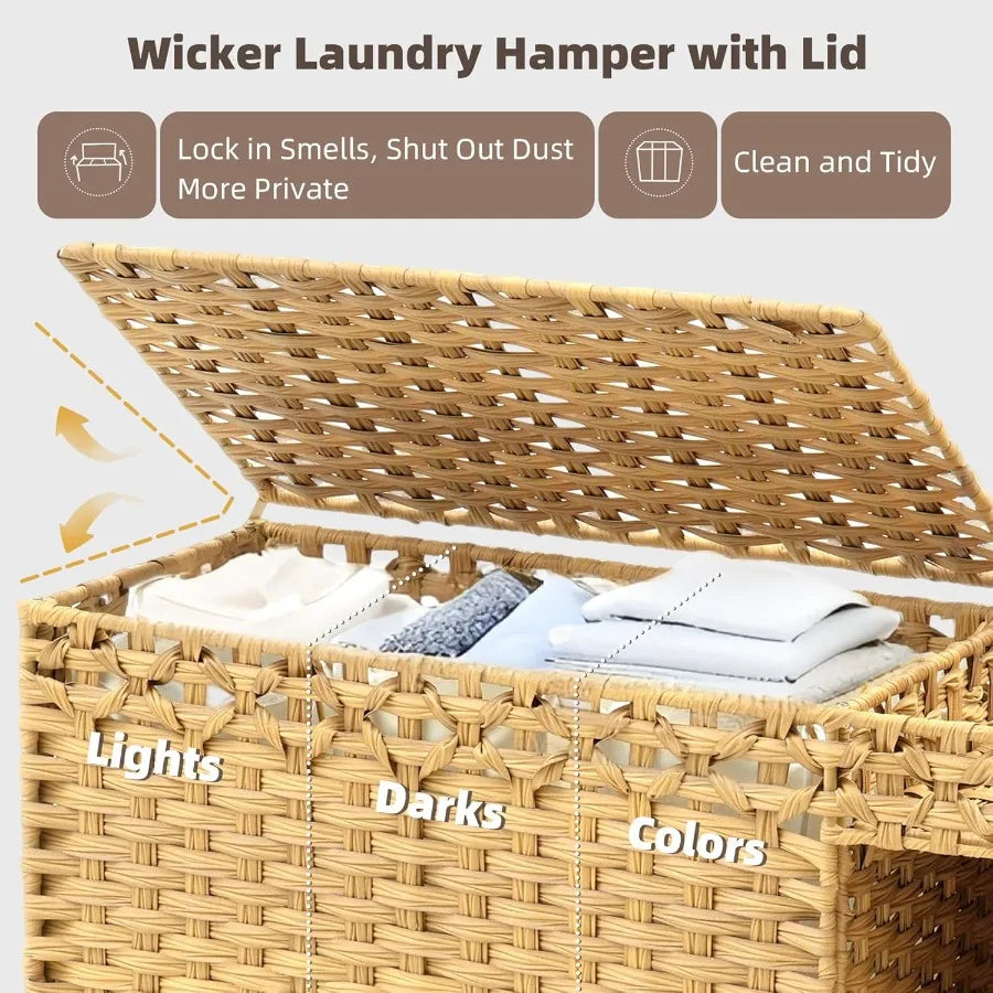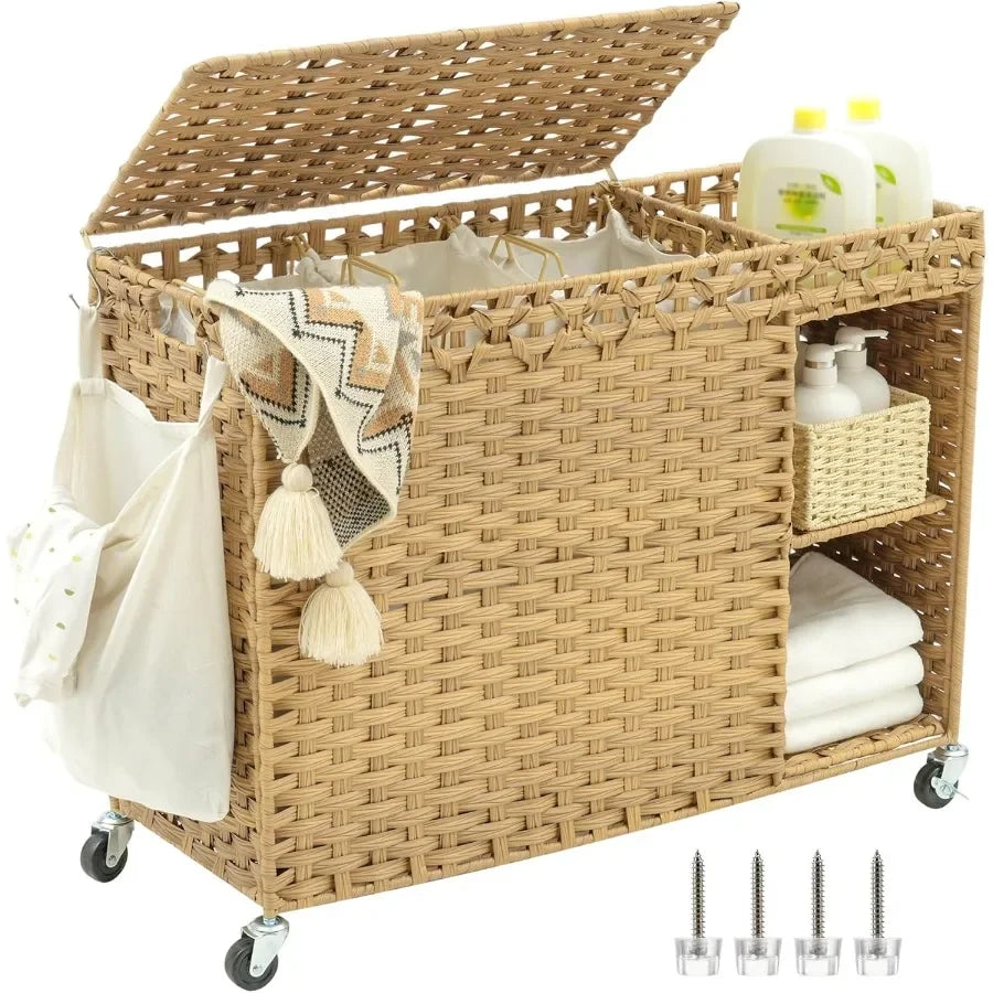180L Rattan Wicker Laundry Hamper with Wheels and Lid