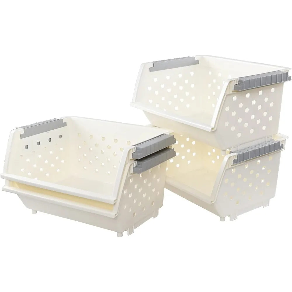 Pack White Large Stacking Basket Plastic Stackable Detachable