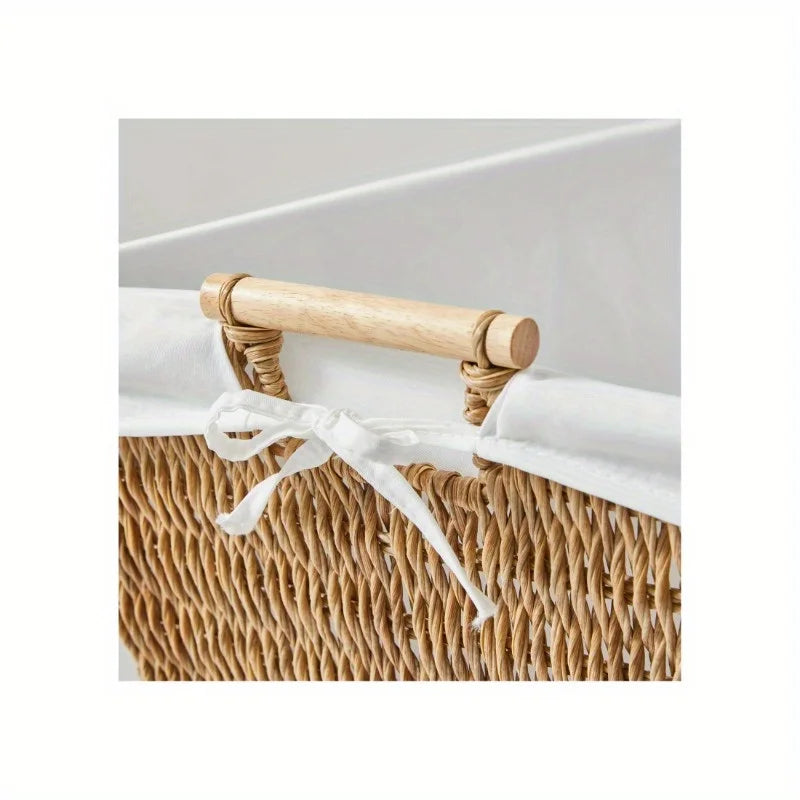 Resin Poly Rattan Laundry Basket with Removable Liner And