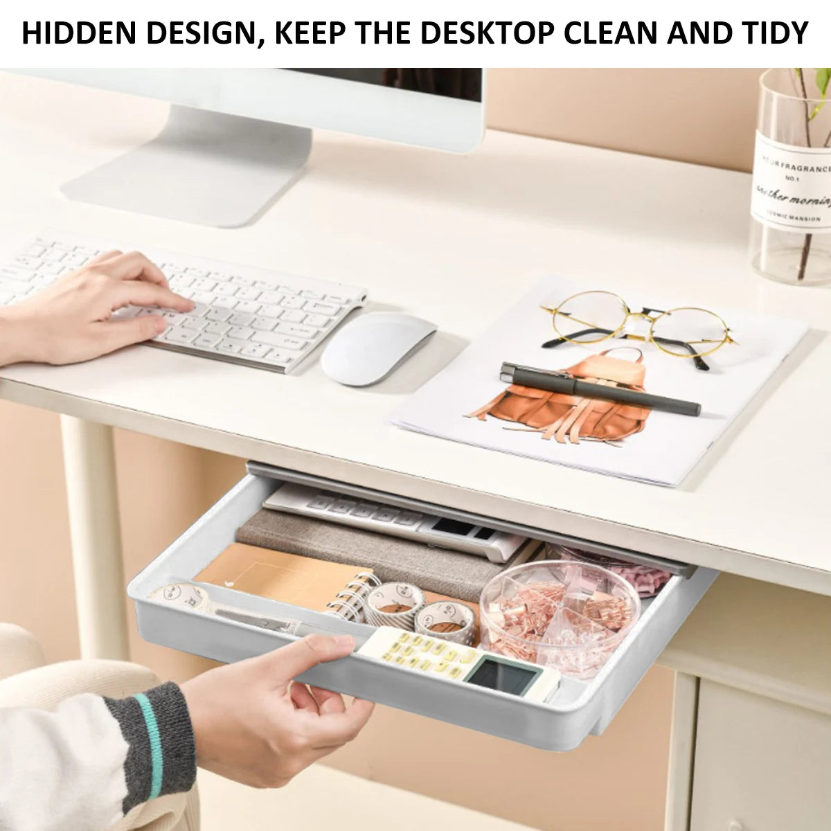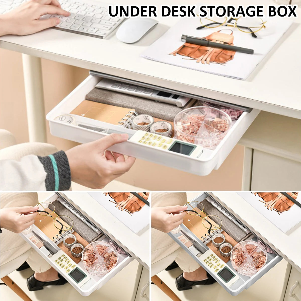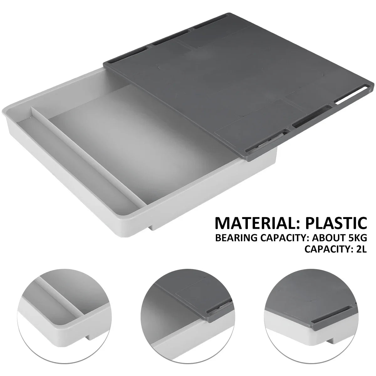 2pcs Under Desk Drawer Storage Box Hidden Self