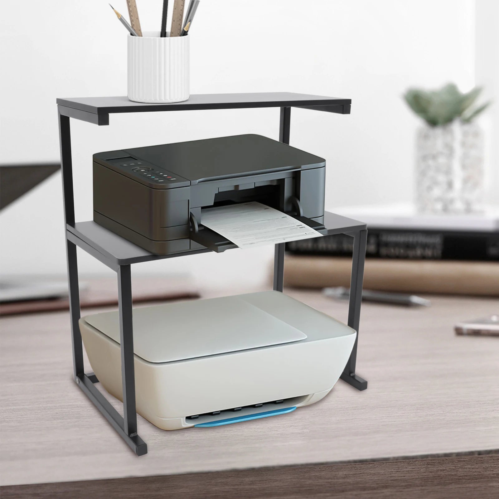 Tier Multifunctional Printer Stand Large Black Office Desk Organizer