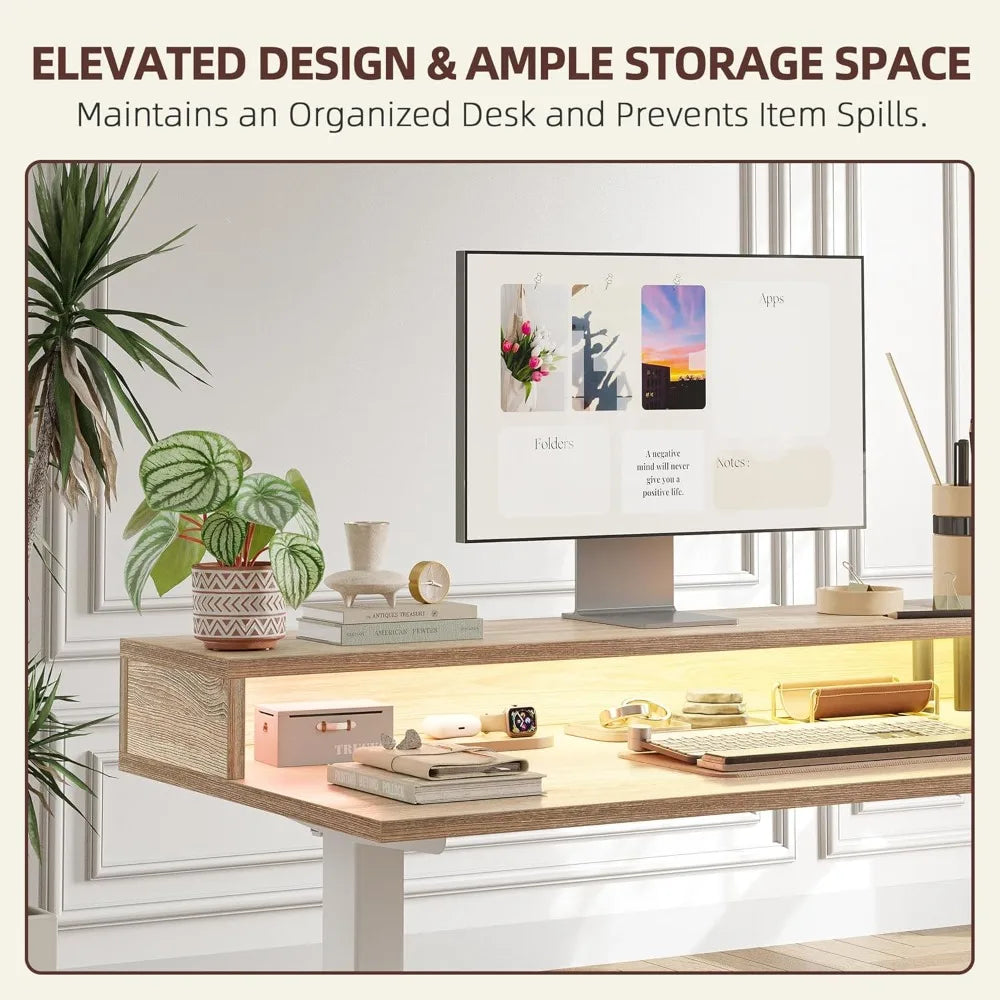 63 Shaped Standing Desk with Led Light Strip And - Adjustable Height