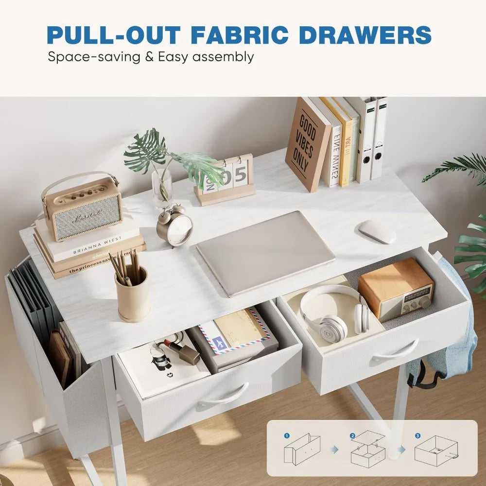 Computer Desk with Drawers Study Writing Table Storage Bag - Adjustable Height