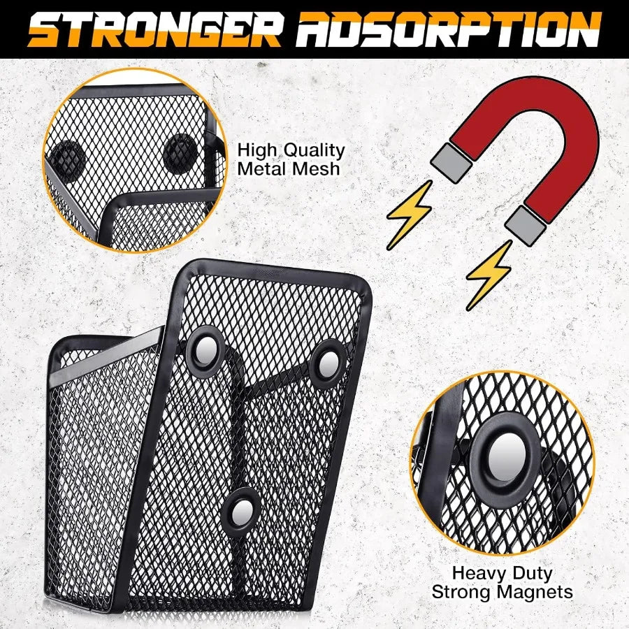 Magnetic Pencil Holder Metal Basket Mesh Pen Black Desk