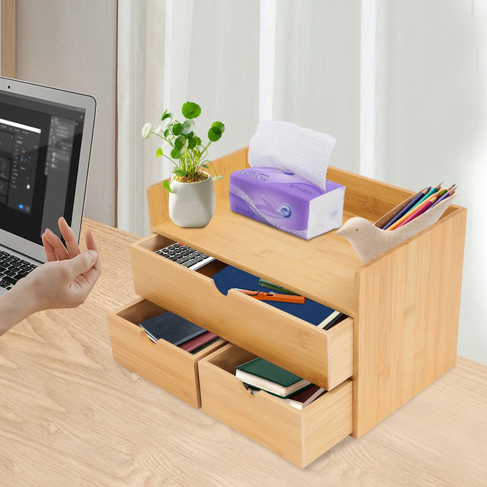 Original Bamboo Drawer Desk Organizer Mini Tabletop Storage Box