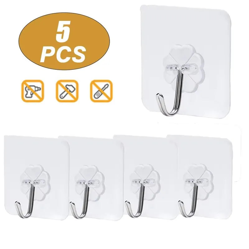 5pcs Transparent Wall Hooks Hangers Self Adhesive Door