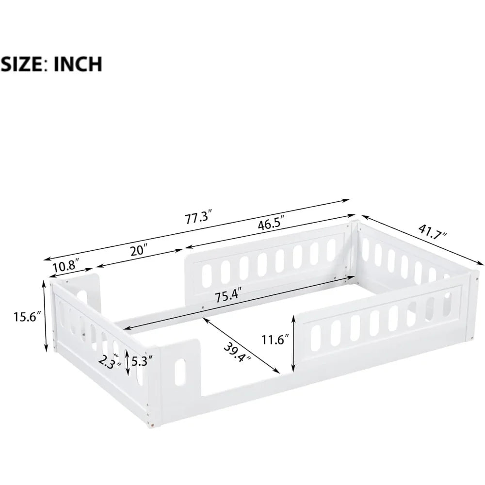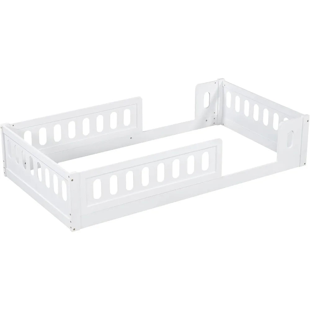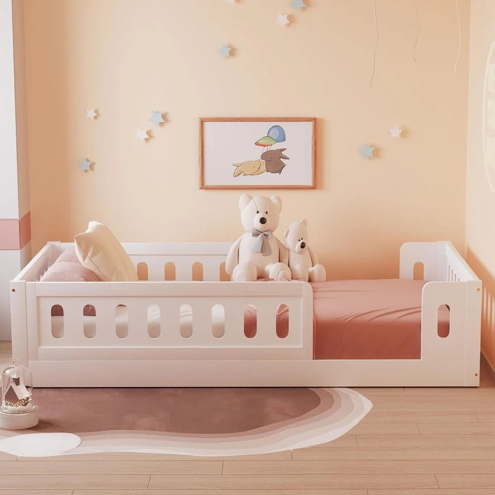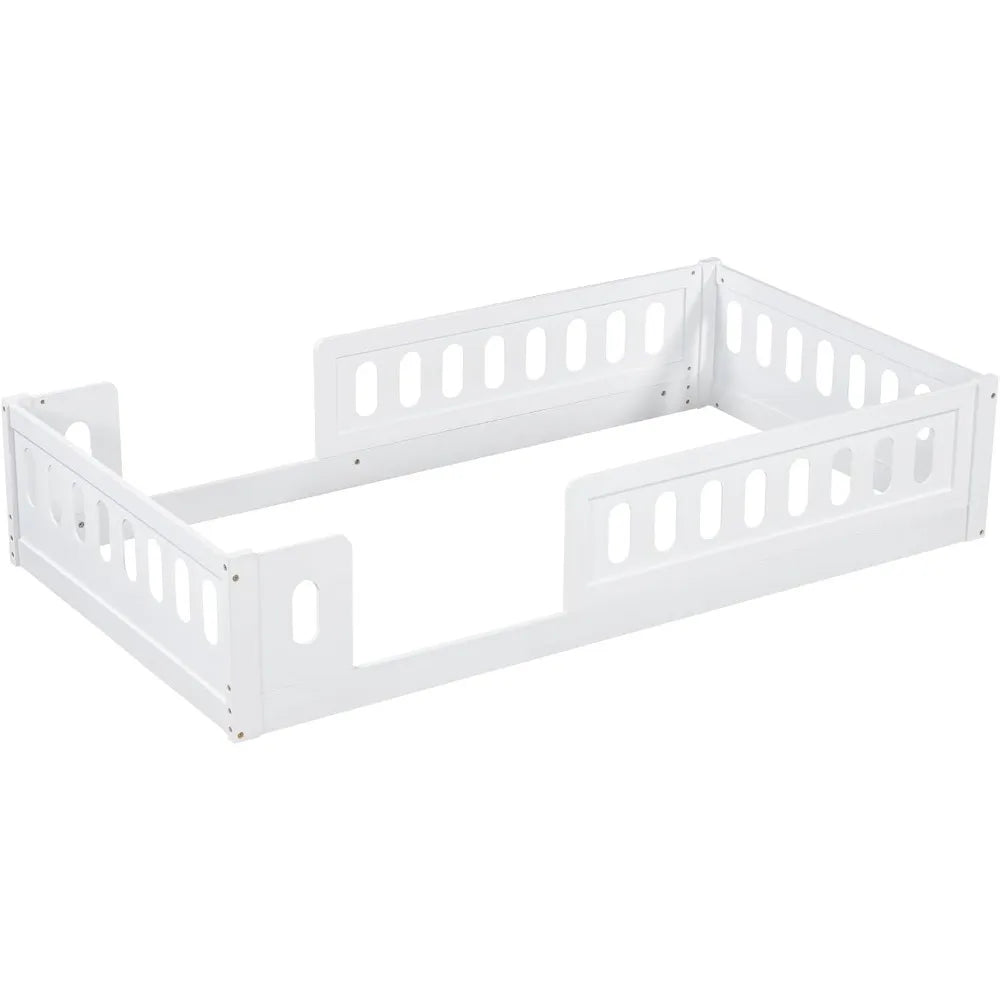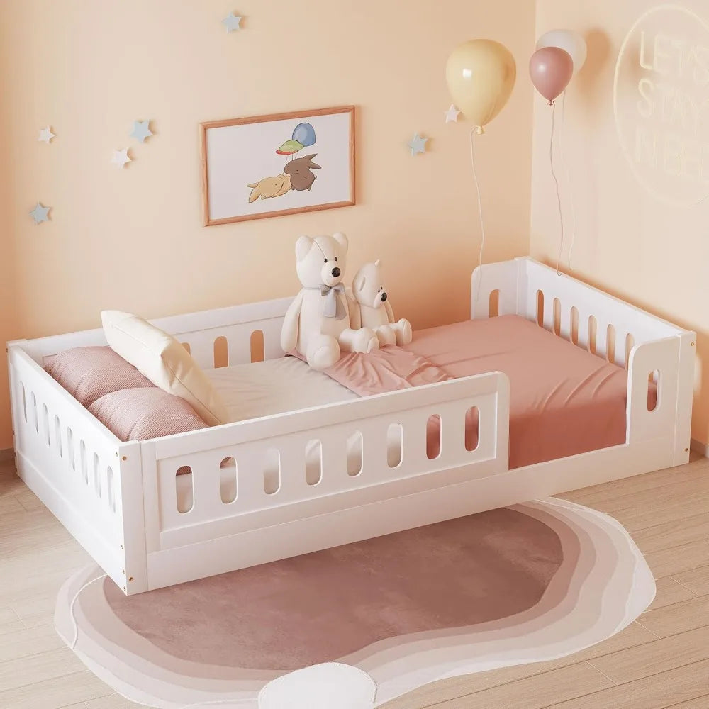 Childrens Montessori Twin Floor Bed with High Wooden Safety