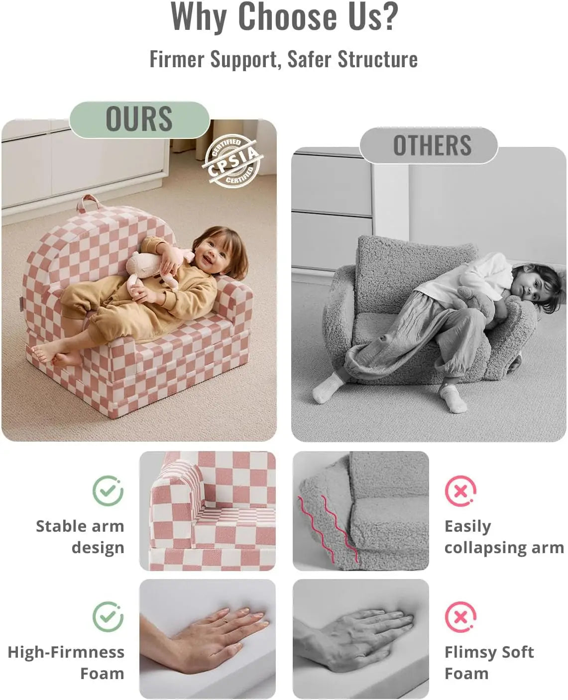 Foldable 2-Inch Toddler Couch Comfy Chair Lounger for Kids Playroom