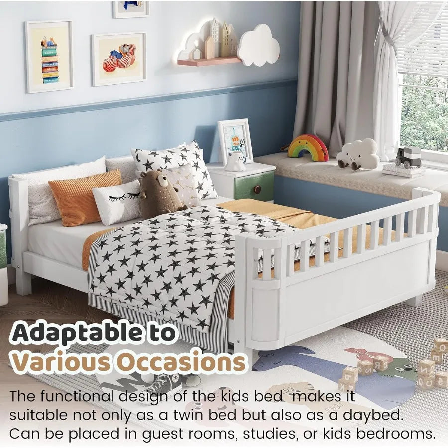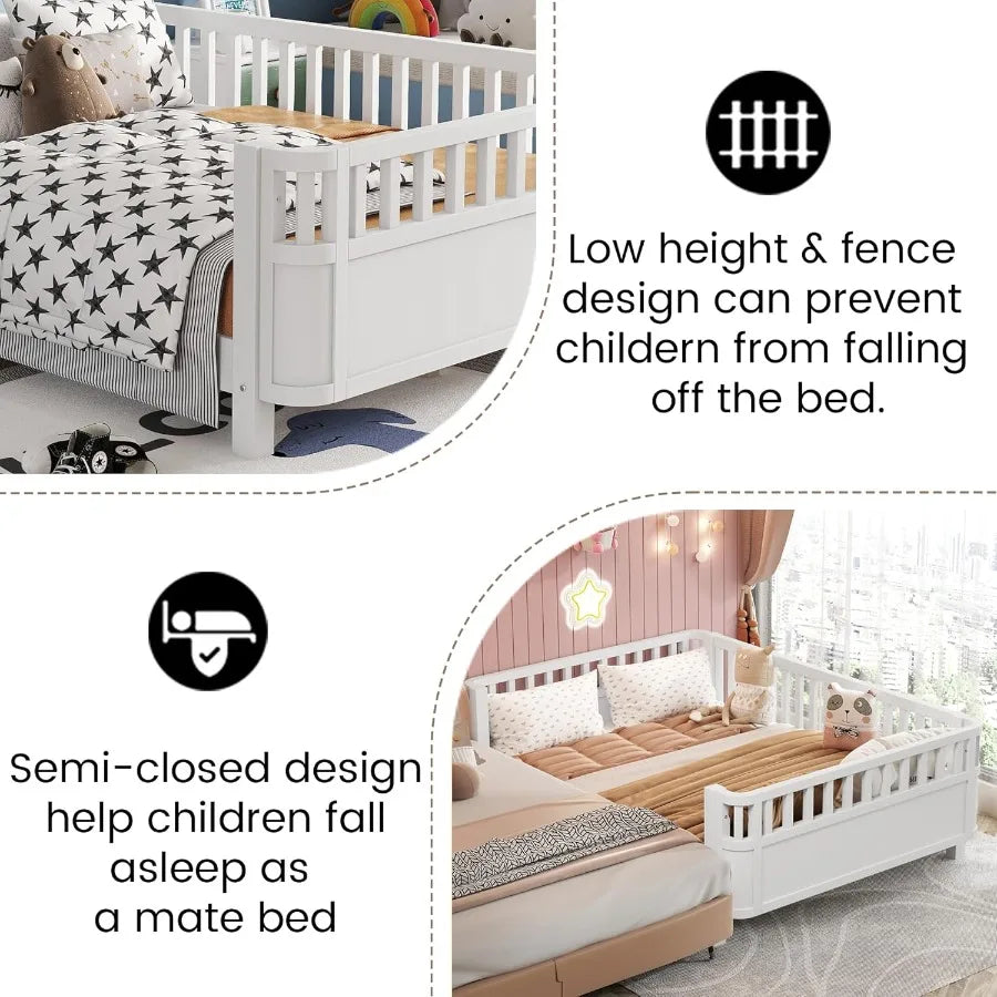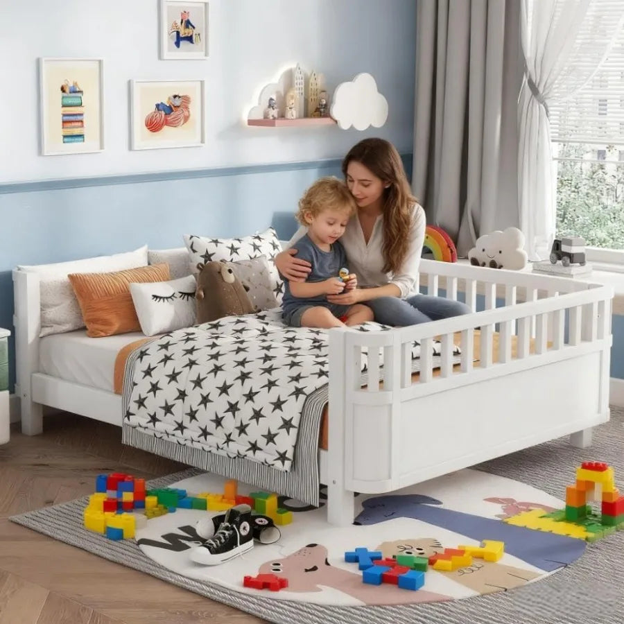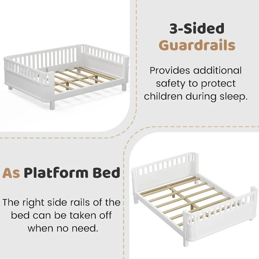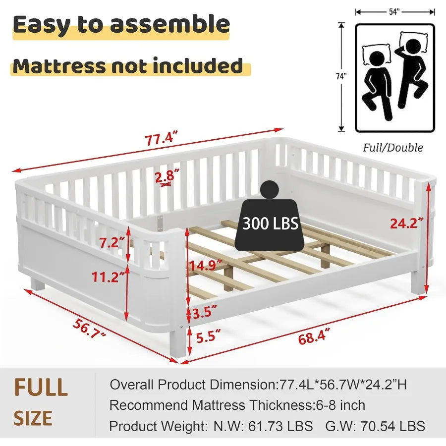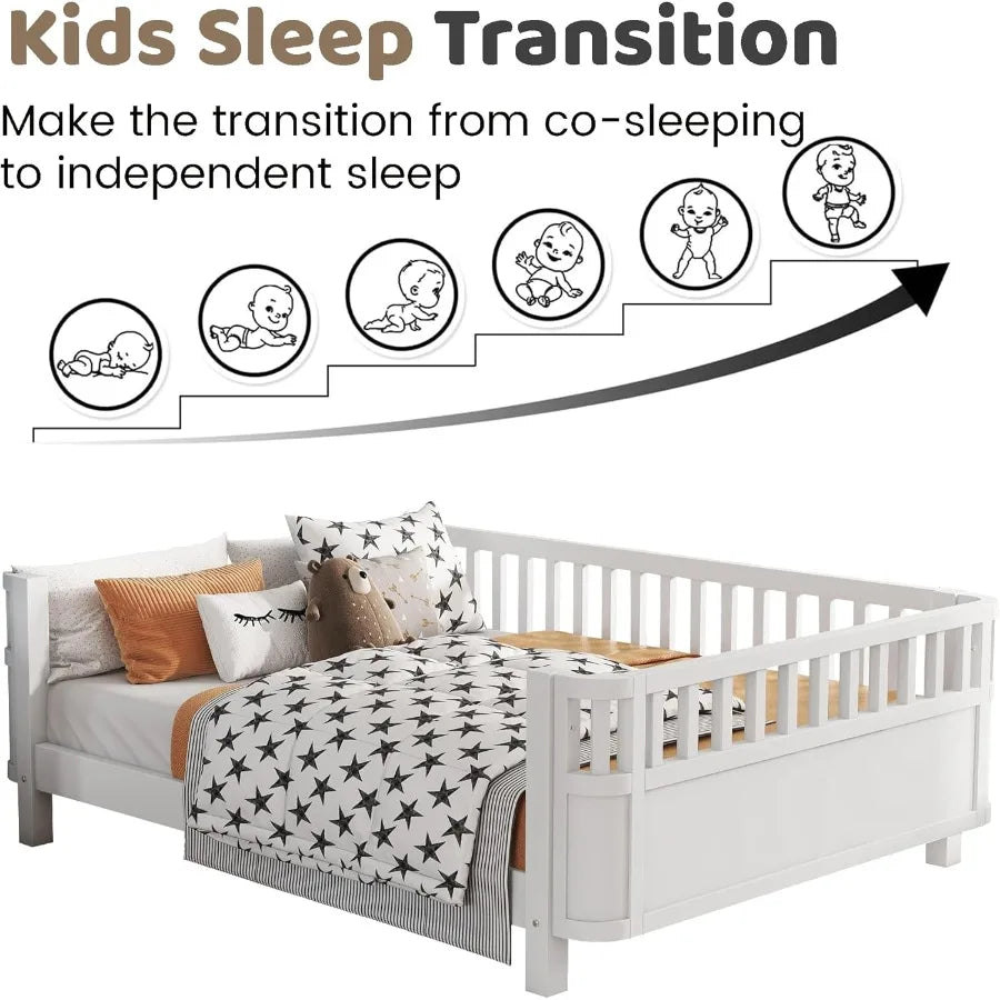 Full Size Bed with Rails Wood Montessori Floorbed Slats