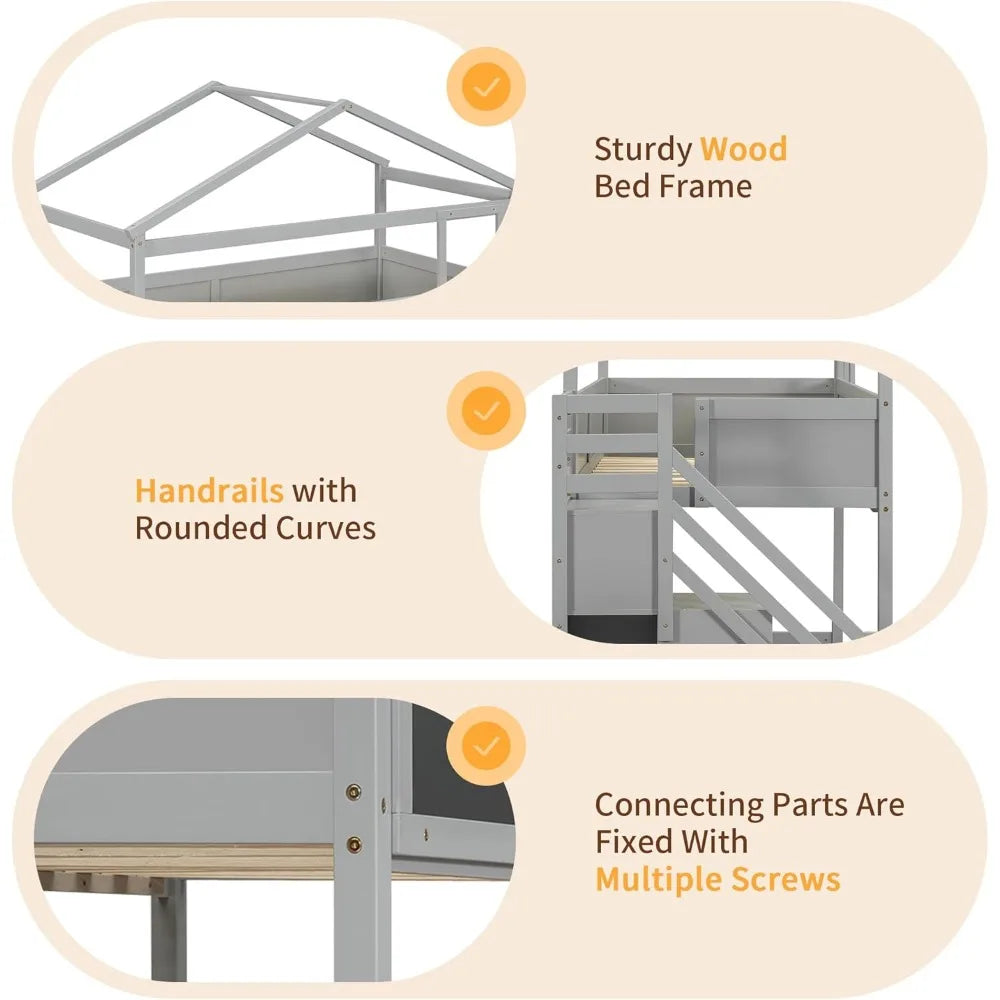 Kids Playhouse Bunk Bed with Twin Top and Full