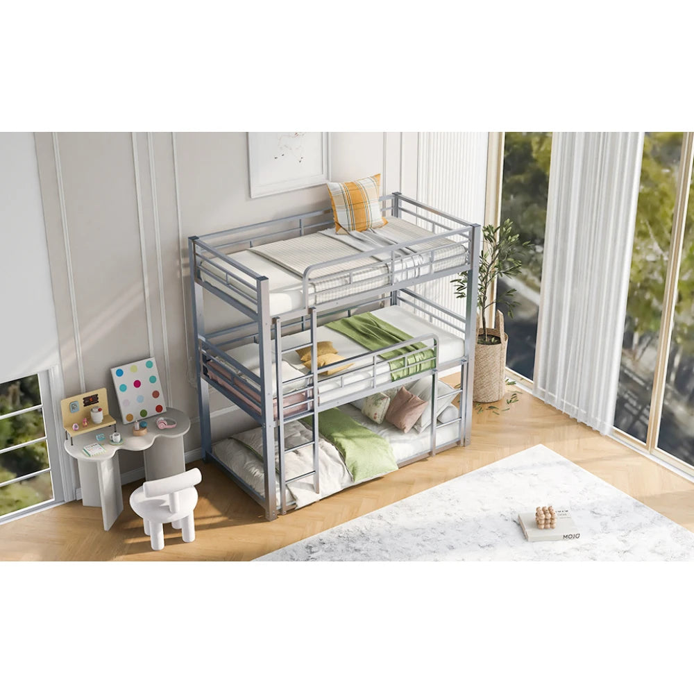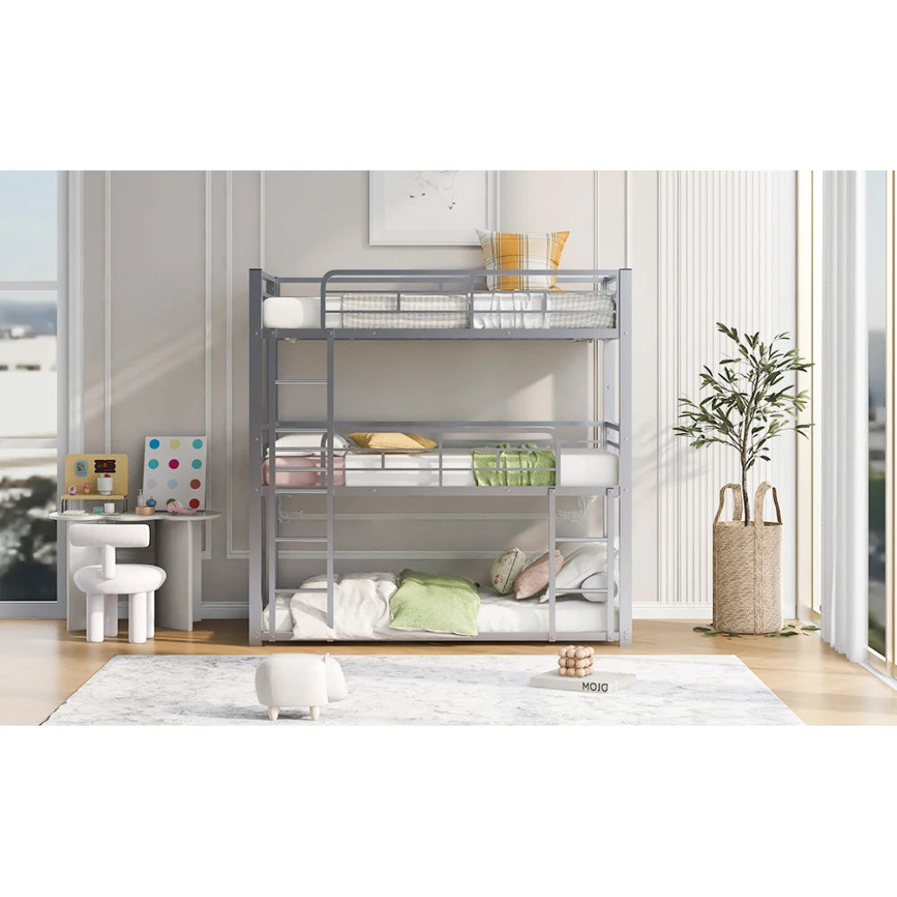 Metal Twin Size Triple Bunk Bed Children Beds Over