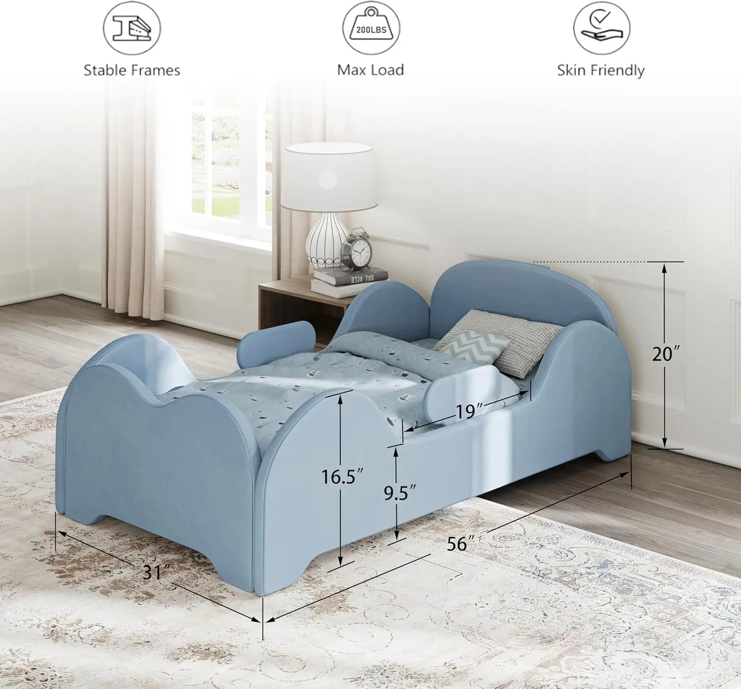 Toddler Bed Blue Extra Safety Rails Low Floor Standard