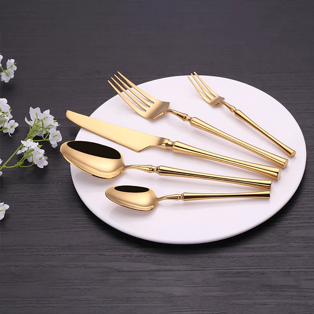 10/15/20/25/30PCS Gold Cutlery Set Stainless Steel Dinnerware Rose Gold Fork Spoon Knife Set Flatware Silverware For Hotel Restaurant Home Wedding Party