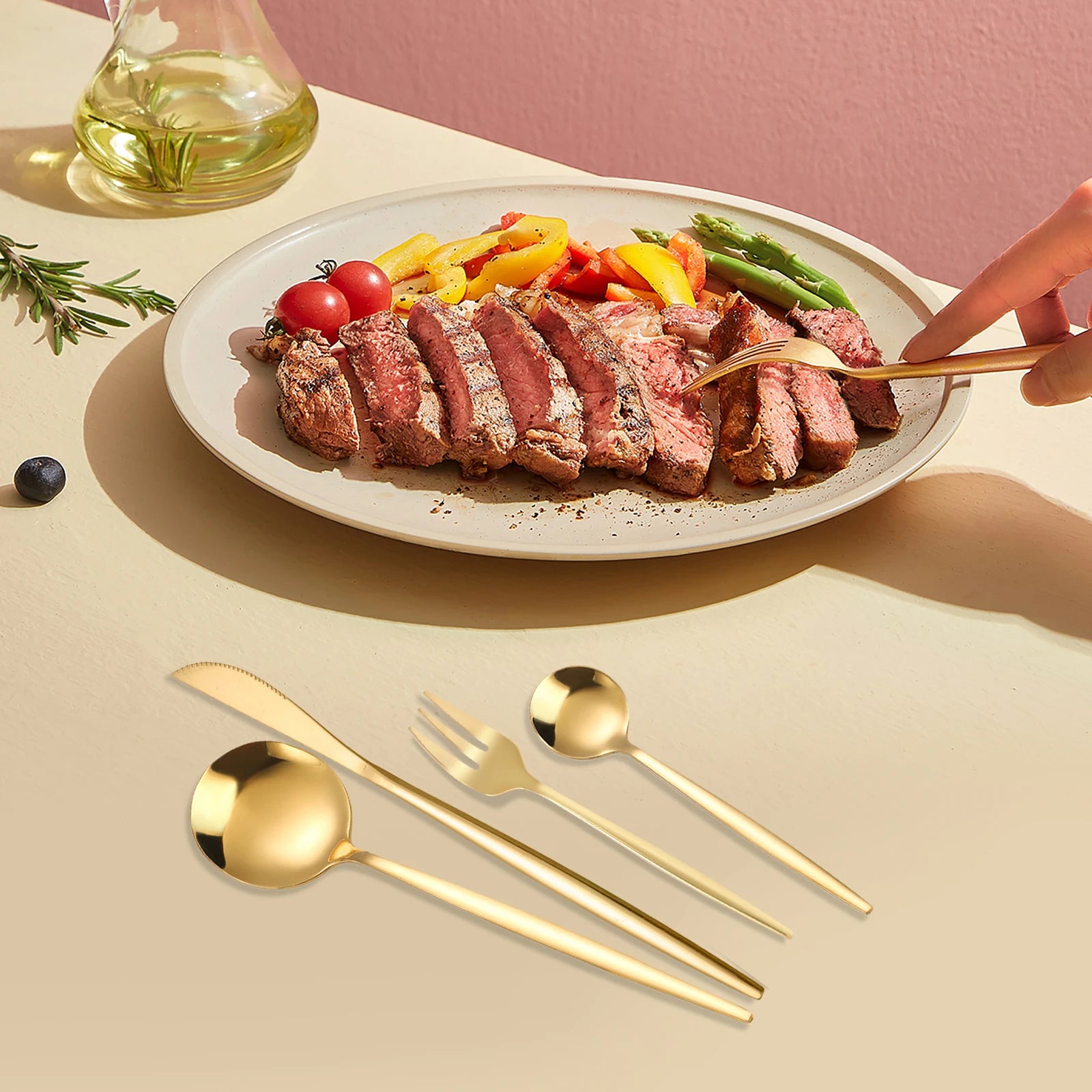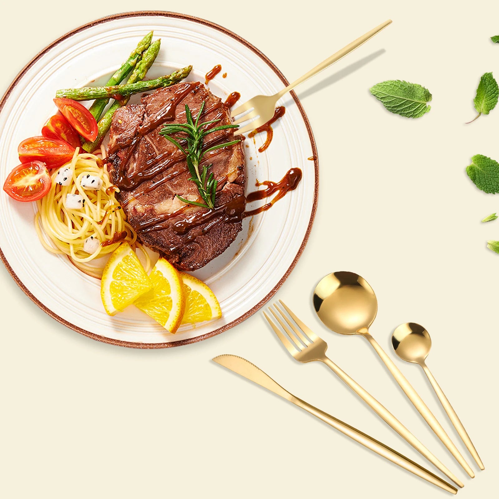 Shiny Appearance: Featuring a pleasing gold surface, this flatware set exudes a luxurious appearance that shines under the light, elevating the sophistication and high-end atmosphere of your dining table.