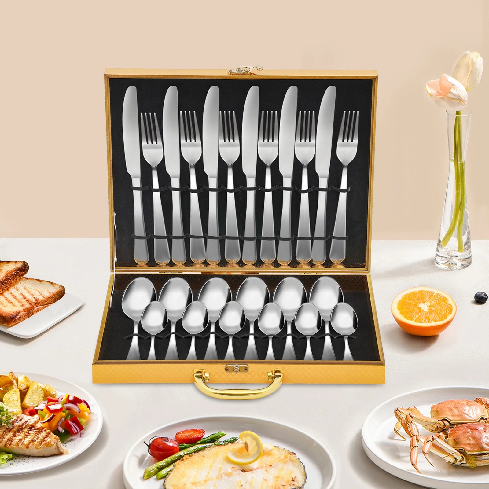 This 24-piece stainless steel cutlery set combines aesthetics and practicality, adding a touch of splendor to your dining table and enabling you to enjoy a prestigious life from every meal. The 24-piece set makes this product a match for both family dinners and small gatherings of friends. It will satisfy your pursuit of dining rituals and let you enjoy every meal with health and happiness.