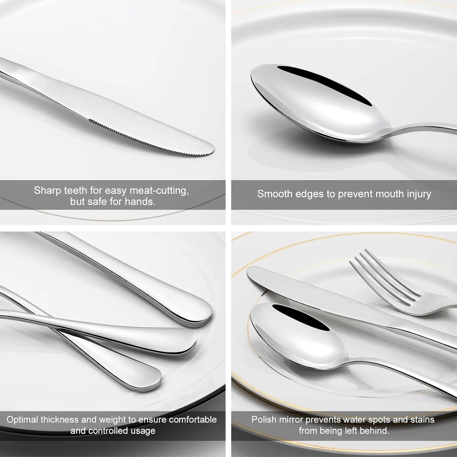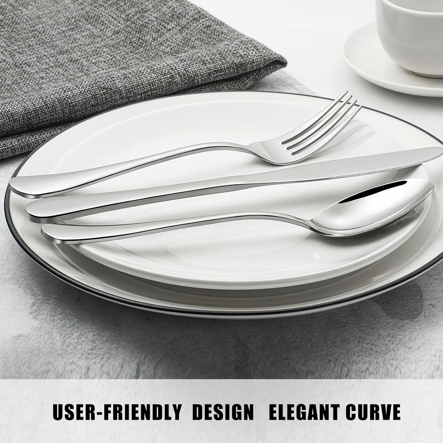 STYLISH AND EXCELLENT SHAPE: The cutlery set is our best choice because of Highly mirror polished, high-quality construction, smooth edges and comfortable handle. Perfect for your daily dining needs, but also suitable for all kinds of parties and restaurant dining