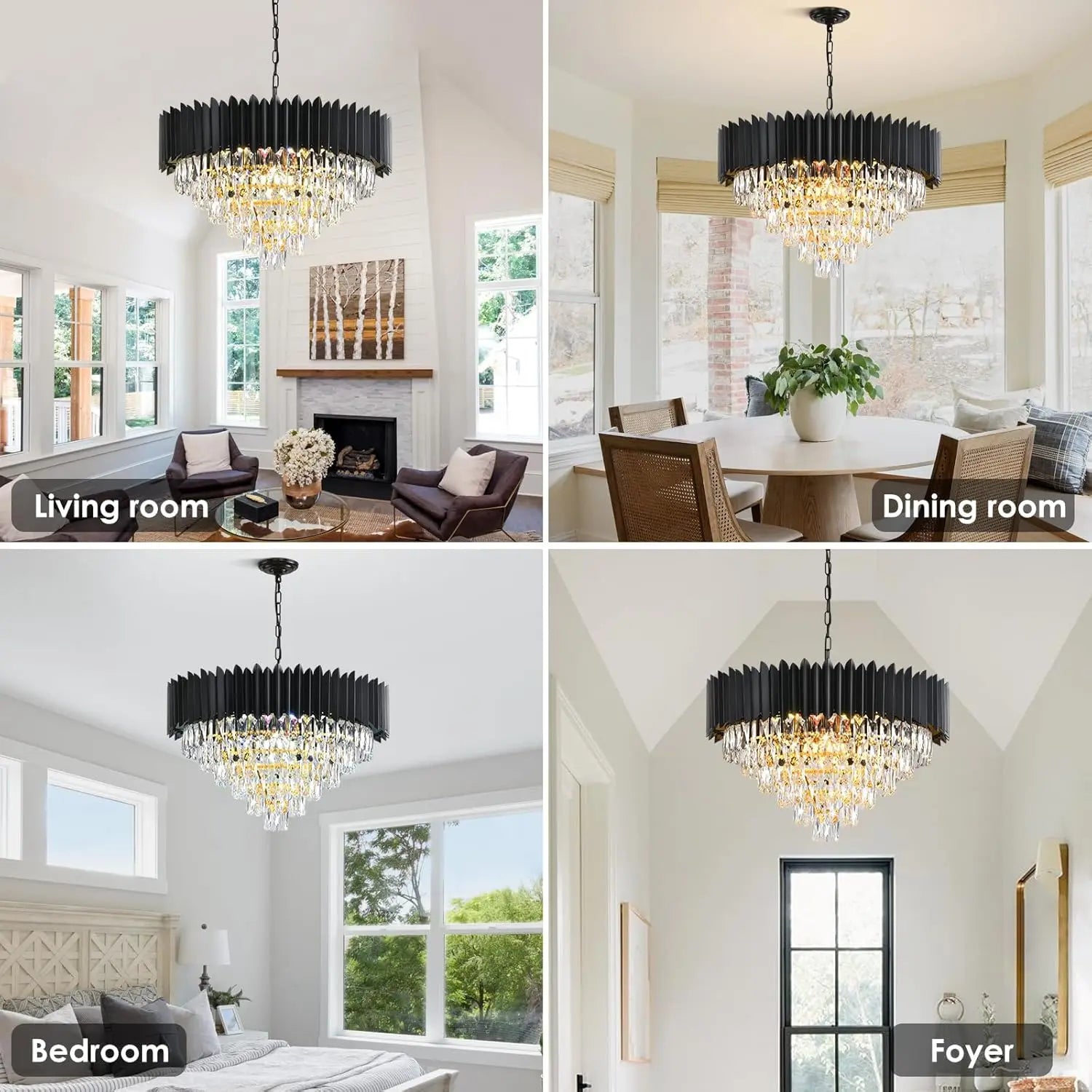Gold Modern Crystal Chandelier Tier Round Light Fixture Black