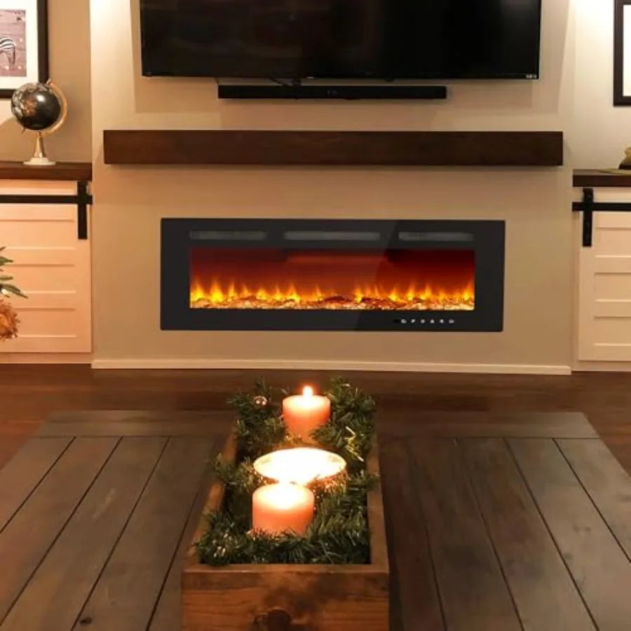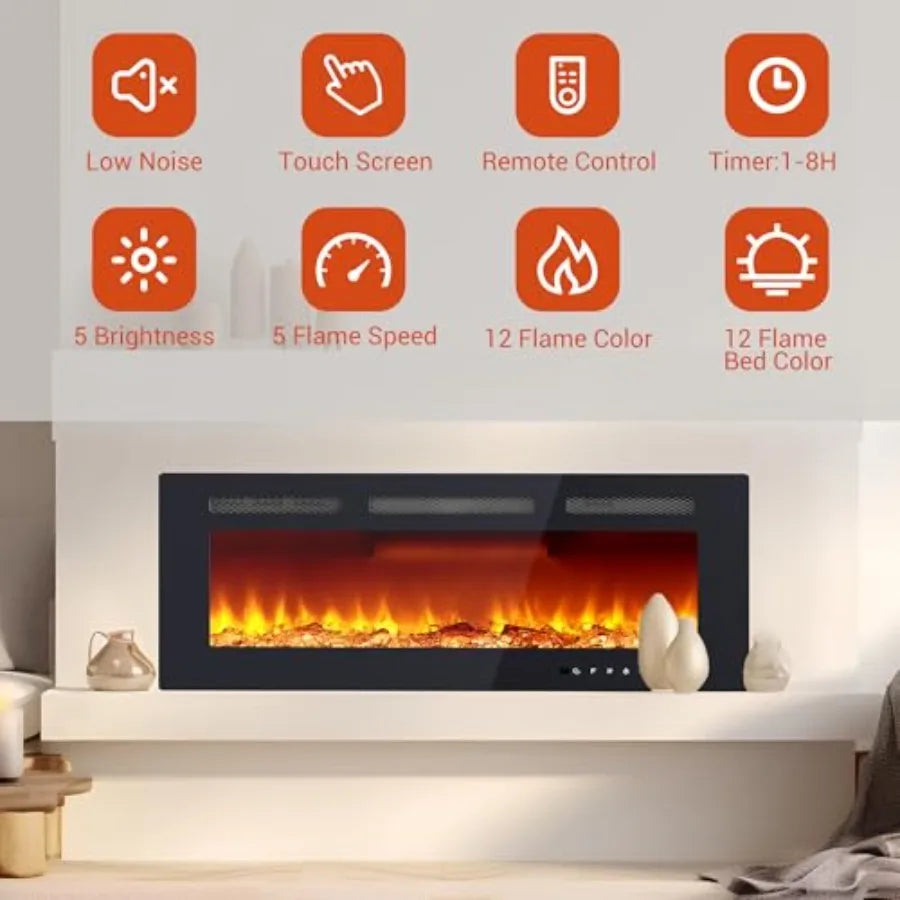 40-Inch Inch Electric Fireplace with Wall Recessed and Mounted - Adjustable Height