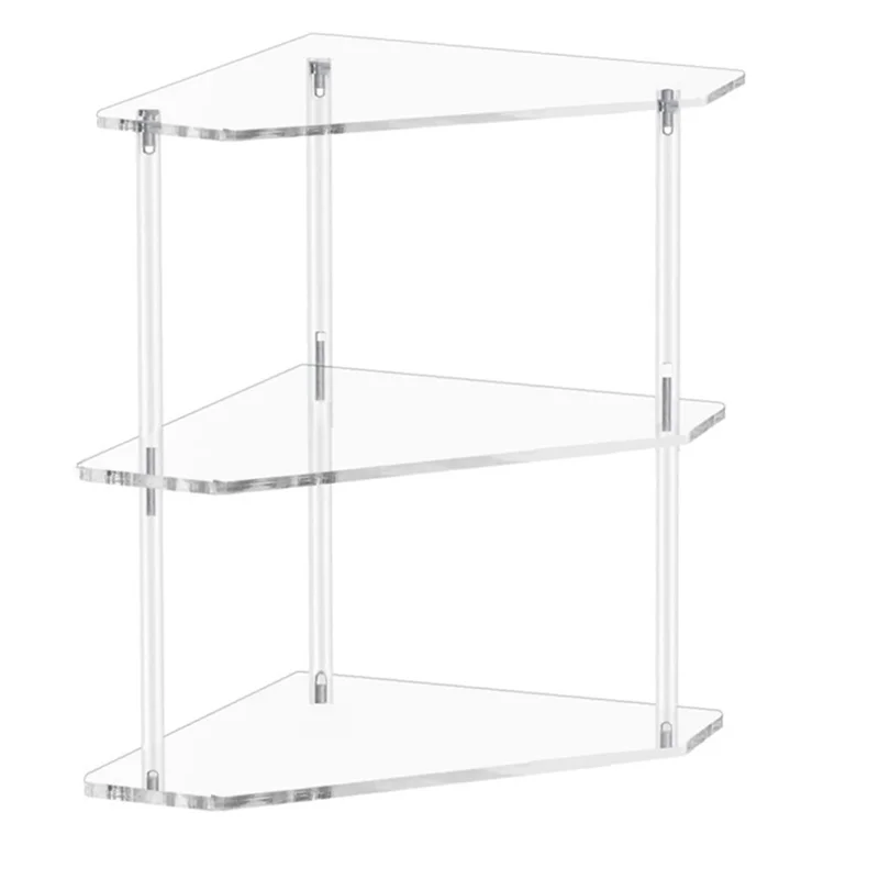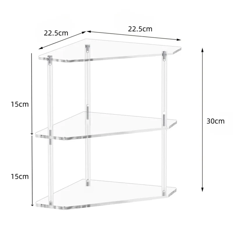 A19F Acrylic Triangle End Table 3 Tier Corner Side Table Small Corner Table For Living Room, Bedroom, Bathroom